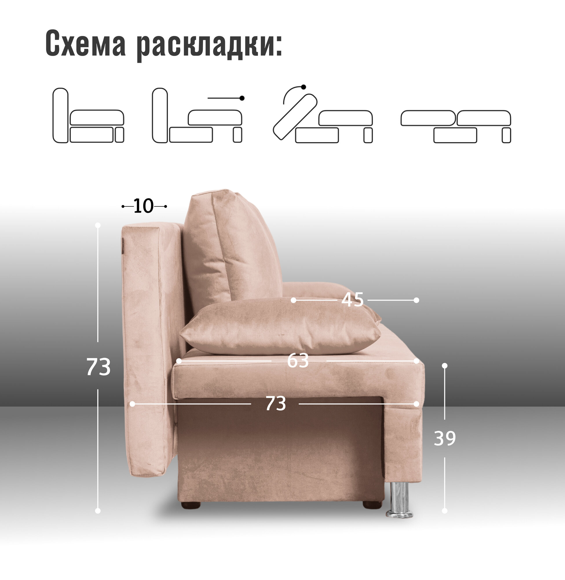 | Особенности | без подлокотников, раскладная конструкция, съемные подушки, ящик для белья |