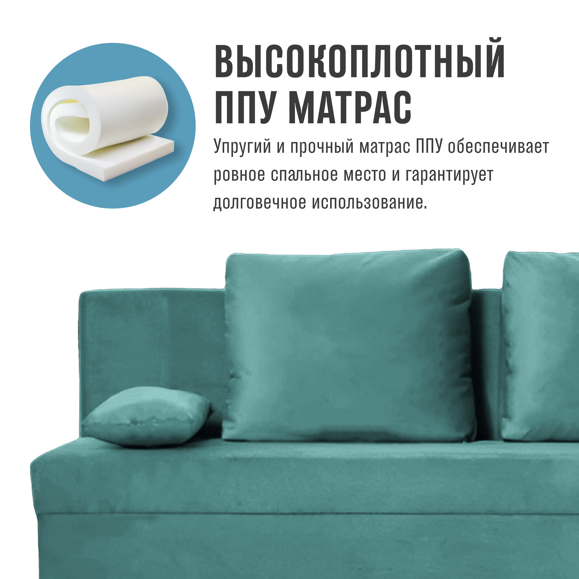 Купить Раскладной диван кровать Токио, механизм еврокнижка, 190х73х73 см, бирюзовый, прямой диванчик с ящиком для хранения
