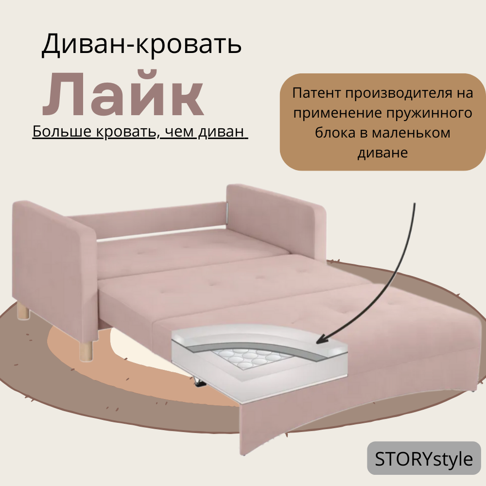 Диван-кровать Лайк, 140*85*80, спальное 120*200, велюр розовый, Велутто 11 интересное:
