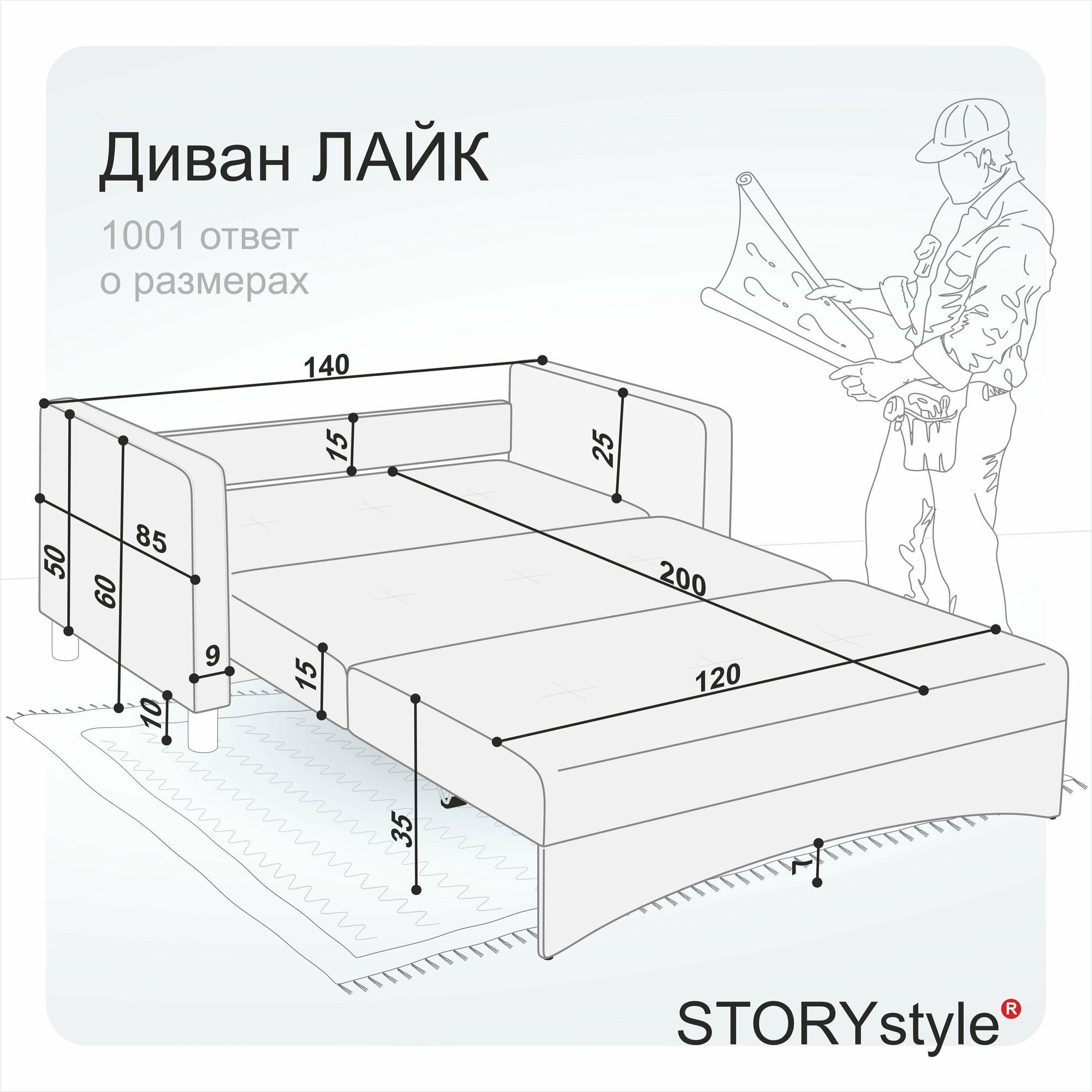 Диван-кровать Лайк, 140*85*80, спальное 120*200, велюр серый, Велутто 32 интересное: