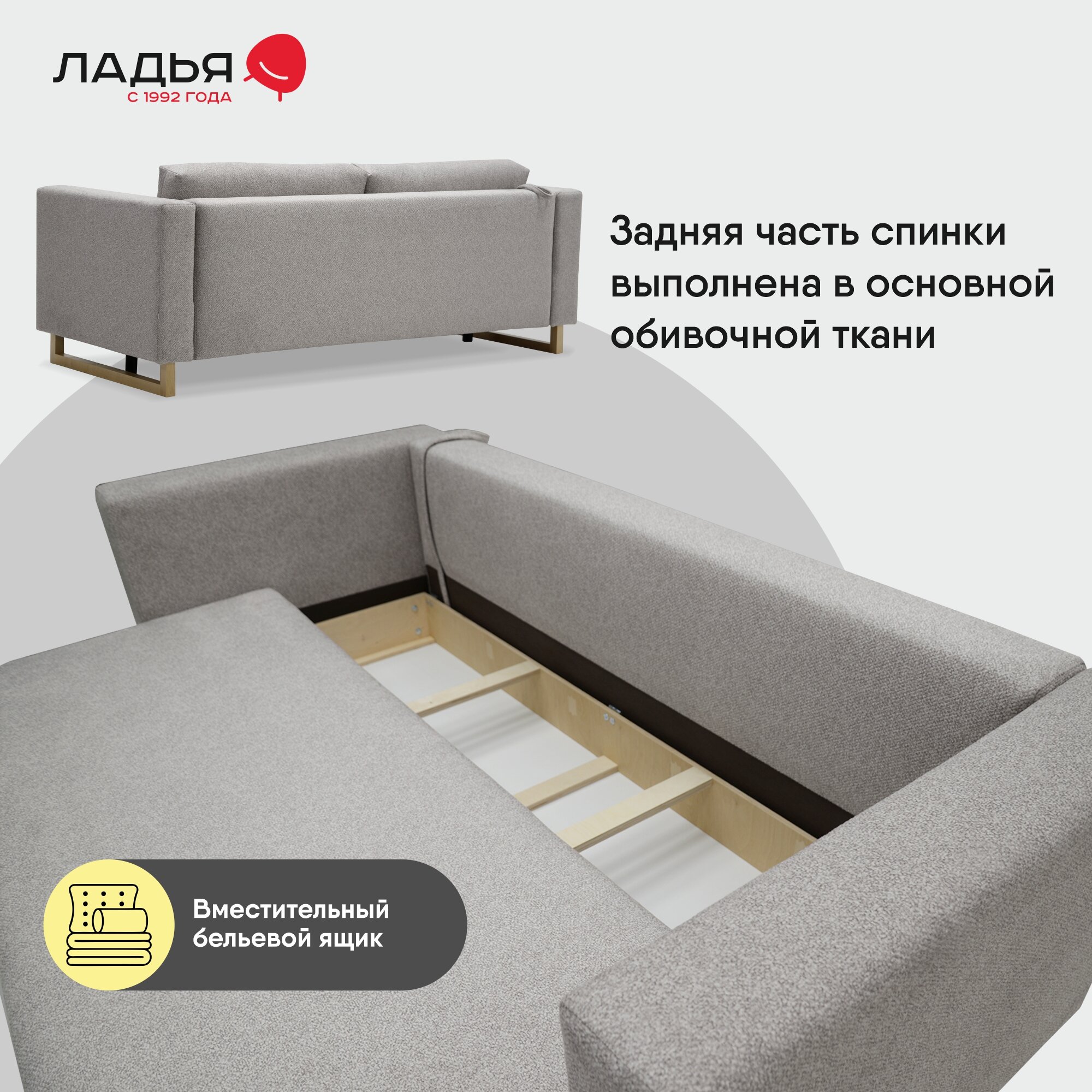 | Особенности | пружинный блок, раскладная конструкция, с подлокотниками, съемные подушки, ящик для белья |