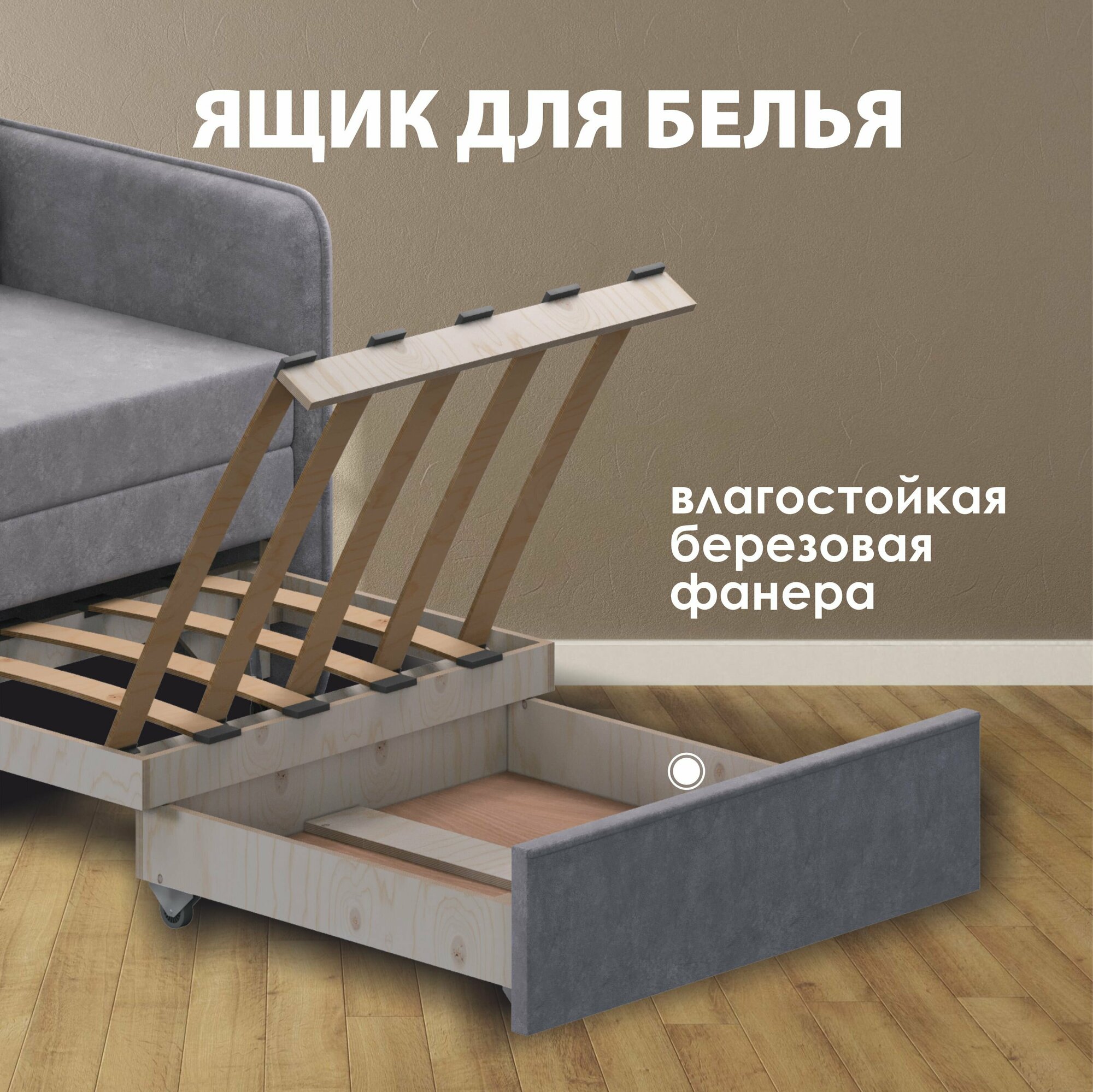 | Особенности | раскладная конструкция, с подлокотниками, съемные подушки, съемный чехол, ящик для белья |