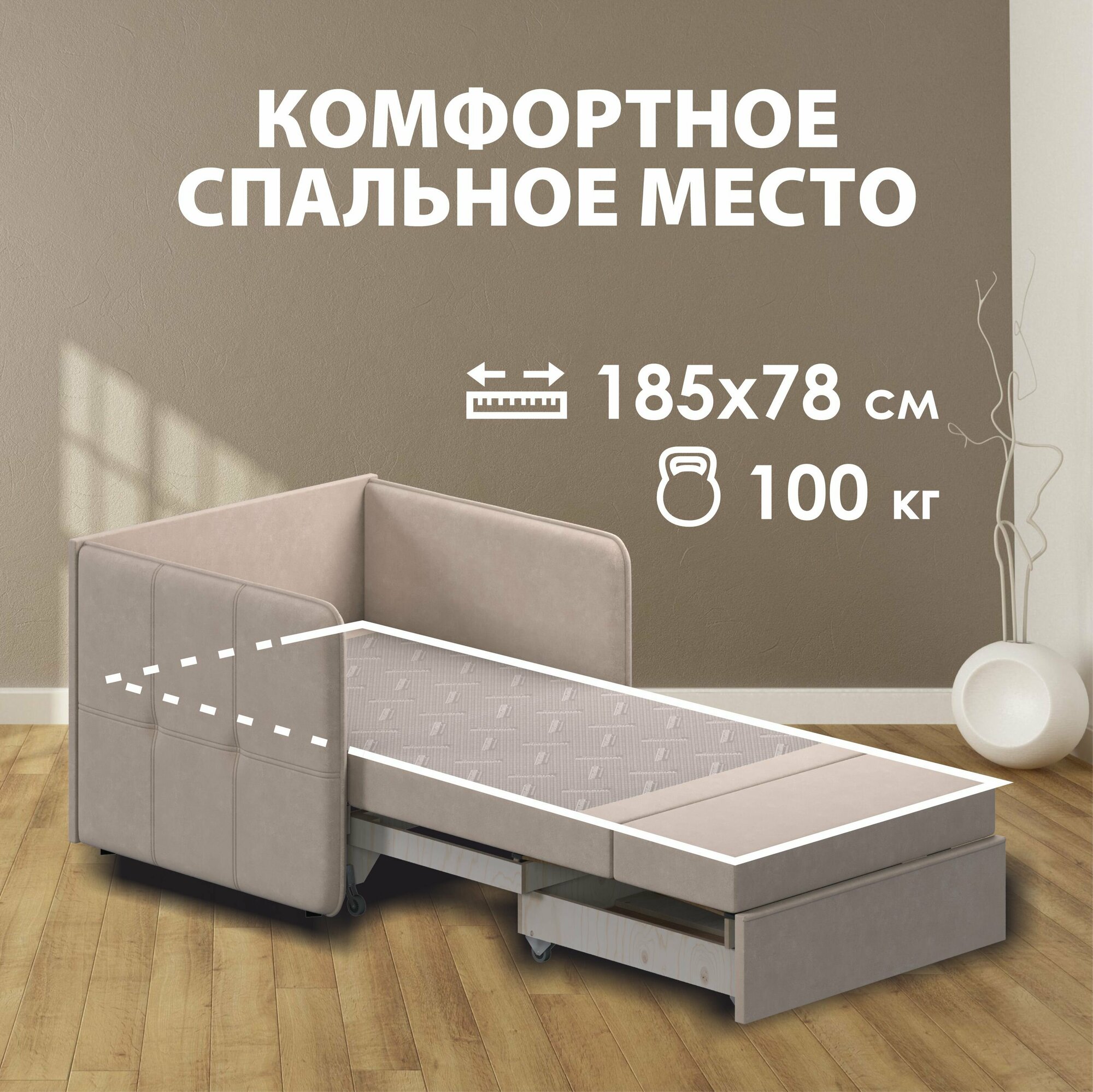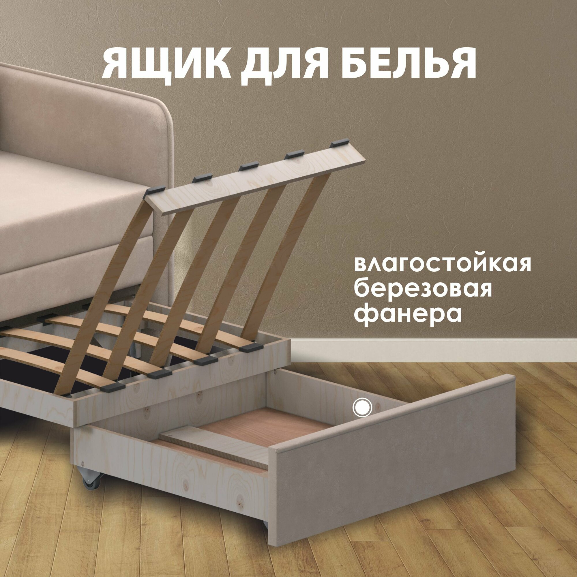 | Особенности | раскладная конструкция, с подлокотниками, съемные подушки, съемный чехол, ящик для белья |