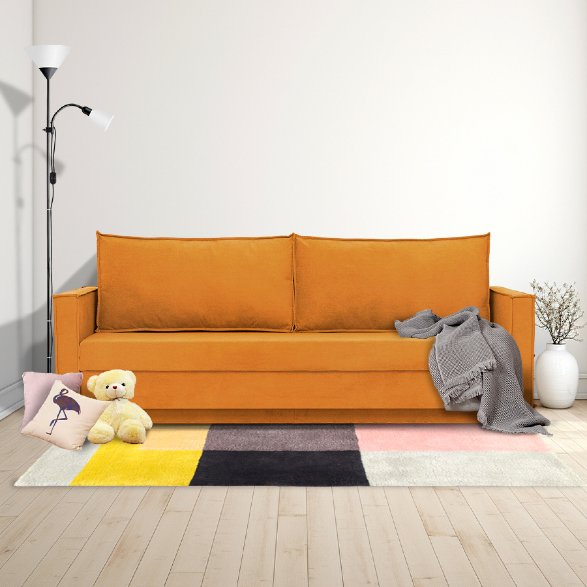 Купить Диван - кровать прямой Виго Лайт, механизм еврокнижка, 212 х 74 х 73 см, Оранжевый