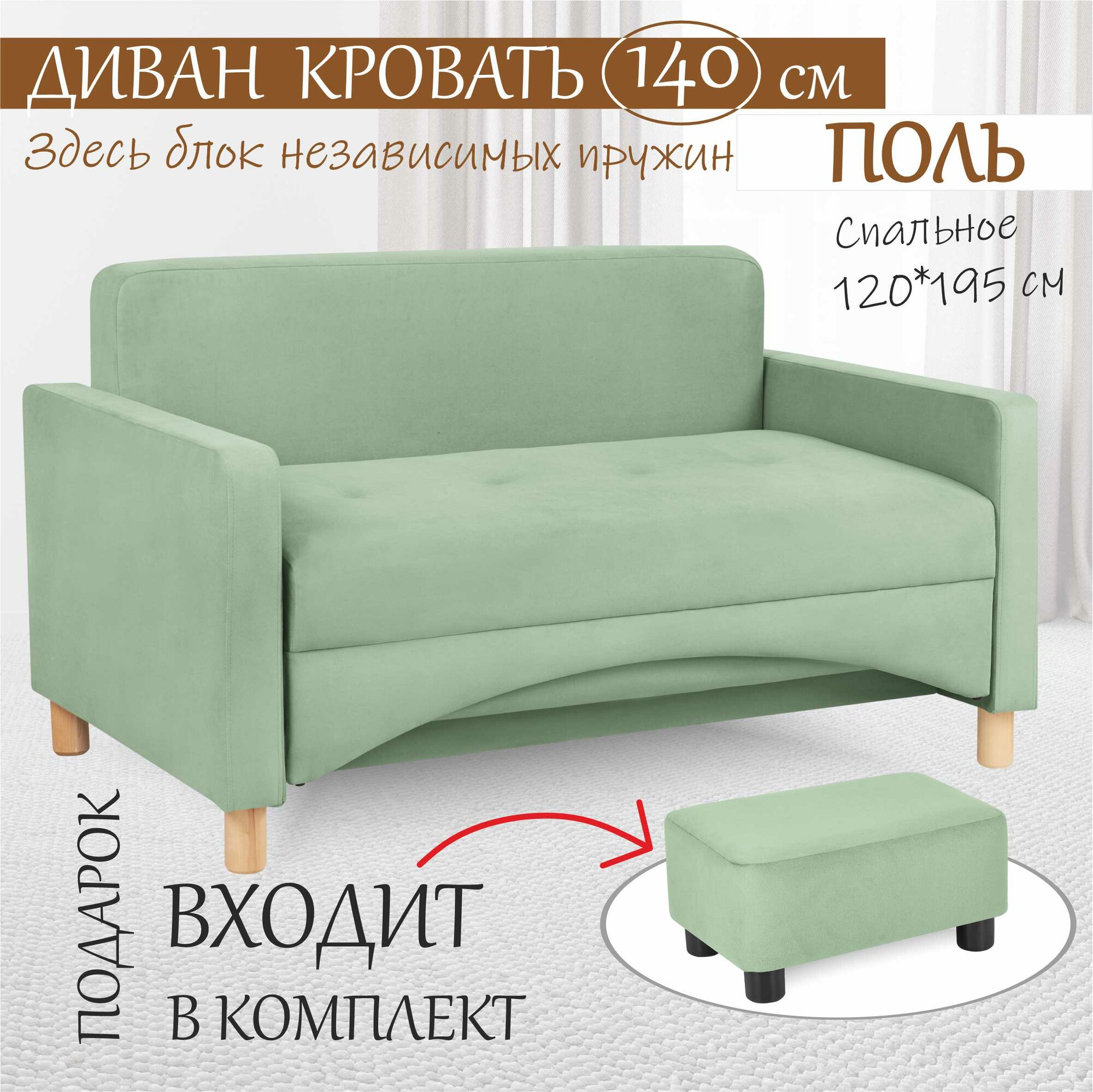 СохранитьДиван-кровать Поль-макси на блоке независимых пружин, прямой, 139*80*81 см, спальное место 120*194 см, велюр мятный 14 интересное: