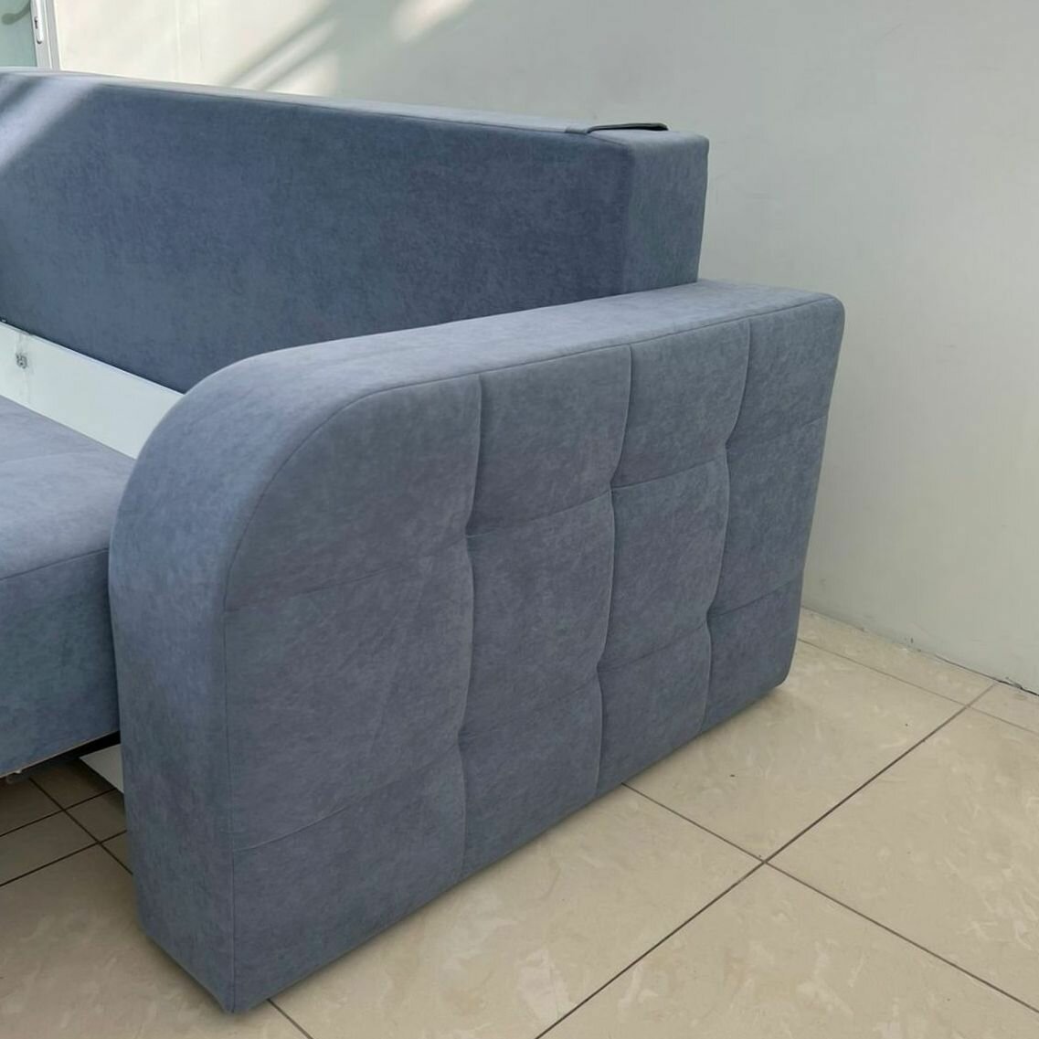 СохранитьДиван раскладной , диван-кровать прямой/ независимый пружинный блок /серое-голубой велюр интересное:
