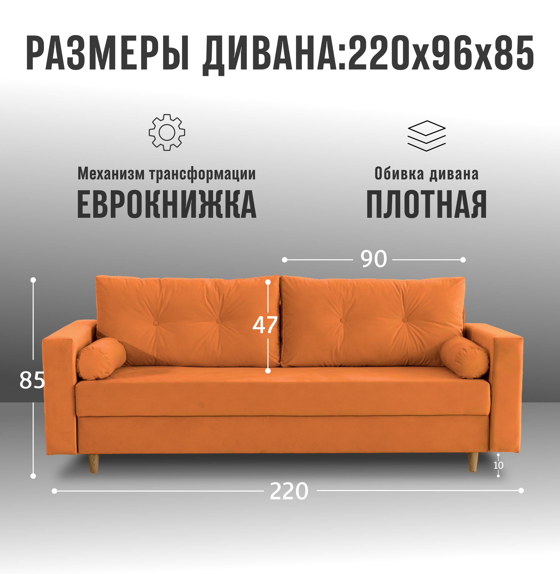 СохранитьРаскладной диван кровать Киото прямой, механизм еврокнижка, 220х96х85 см, оранжевый, диванчик на ножках с ящиком для хранения интересное: