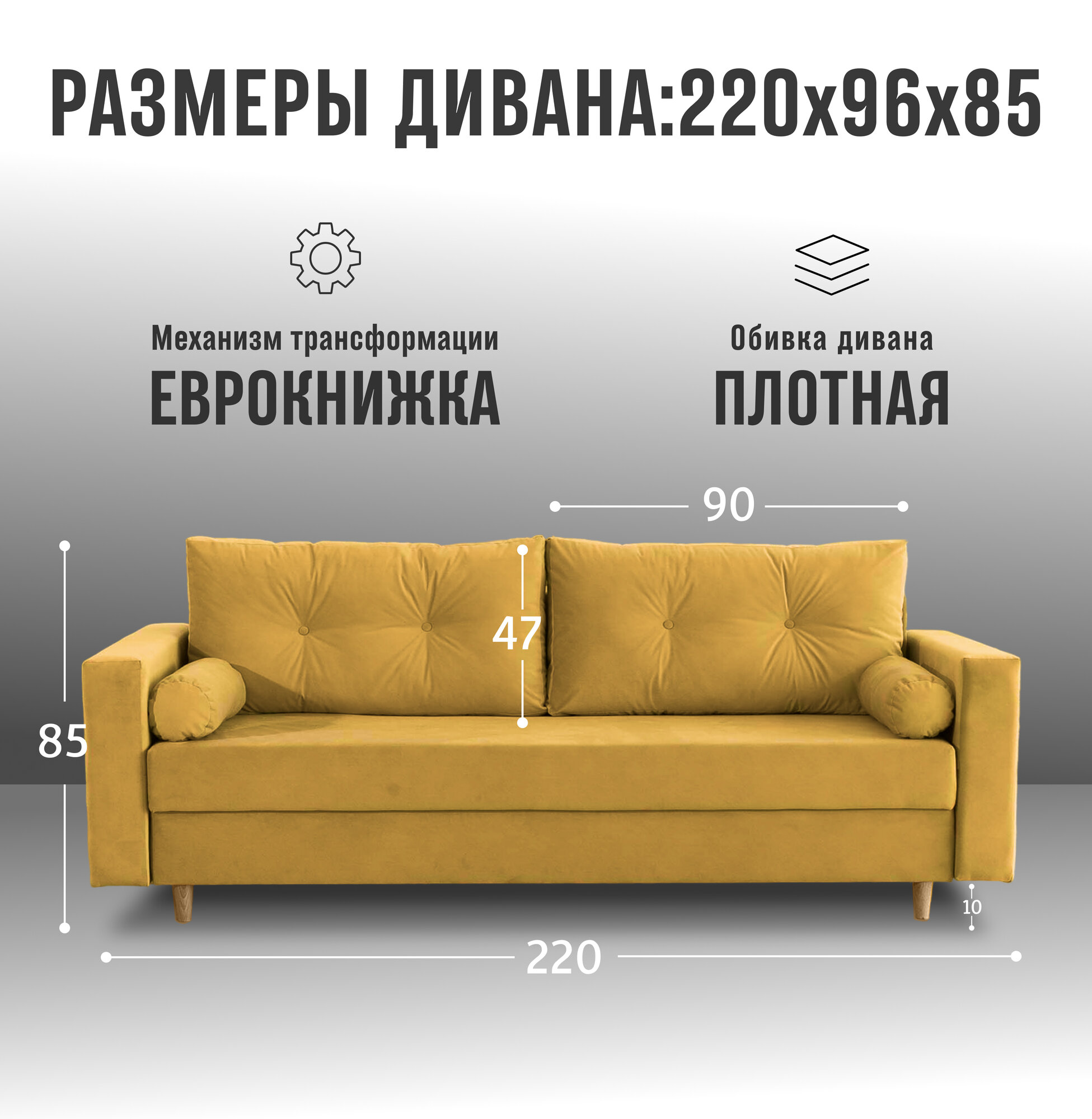 СохранитьРаскладной диван кровать Киото прямой, механизм еврокнижка, 220х96х85 см, горчичный, диванчик на ножках с ящиком для хранения интересное: