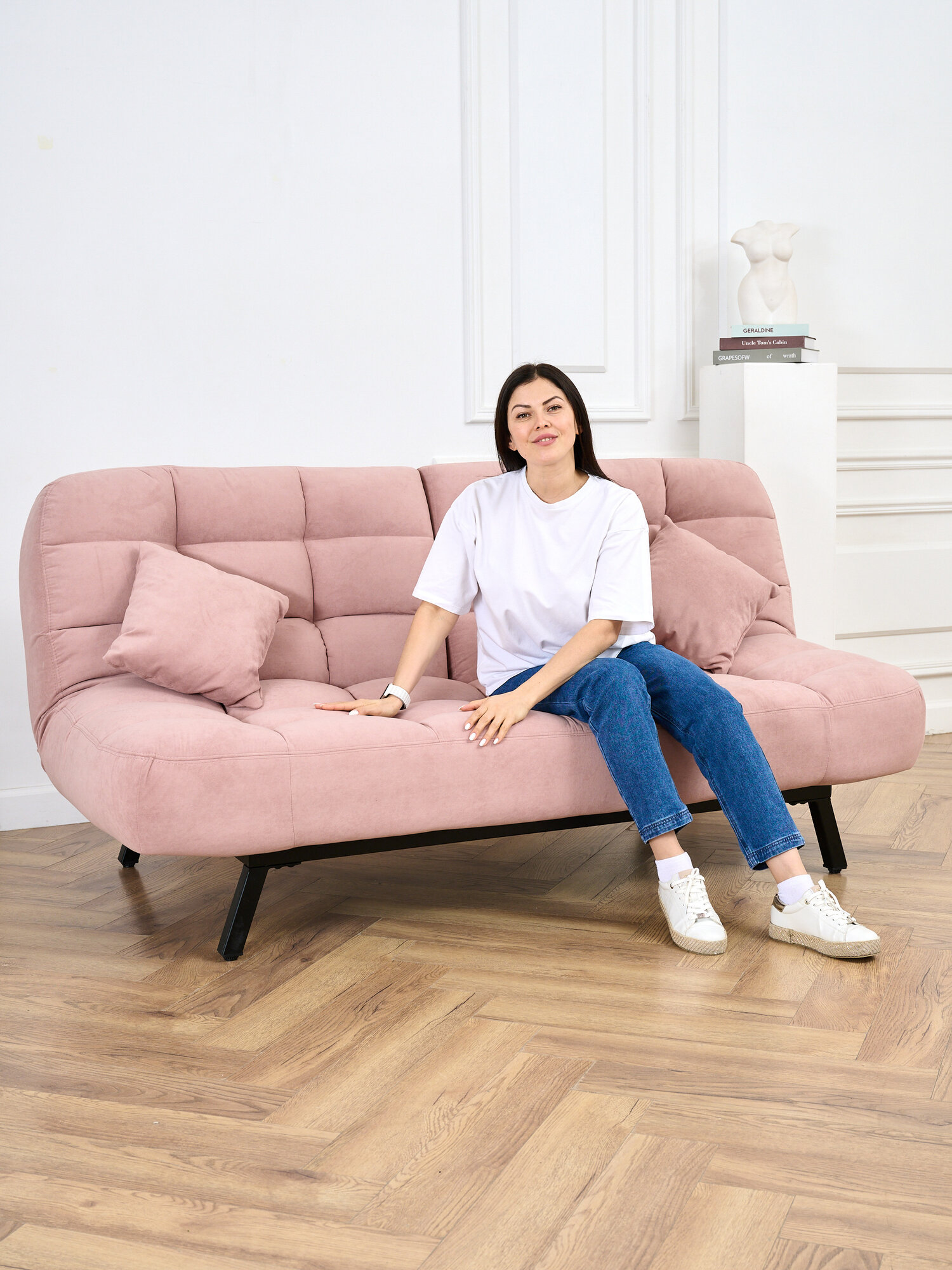Ниже Вы можете прочитать отзывы на Диван-кровать Brendoss 304, прямой диван раскладной с двойной спинкой лофт, механизм клик-кляк, материал антивандальный велюр, цвет розовый, ознакомится с подробными характеристиками, посмотреть интересные обзоры и фотографии на Диван-кровать Brendoss 304, прямой диван раскладной с двойной спинкой лофт, механизм клик-кляк, материал антивандальный велюр, цвет розовый.