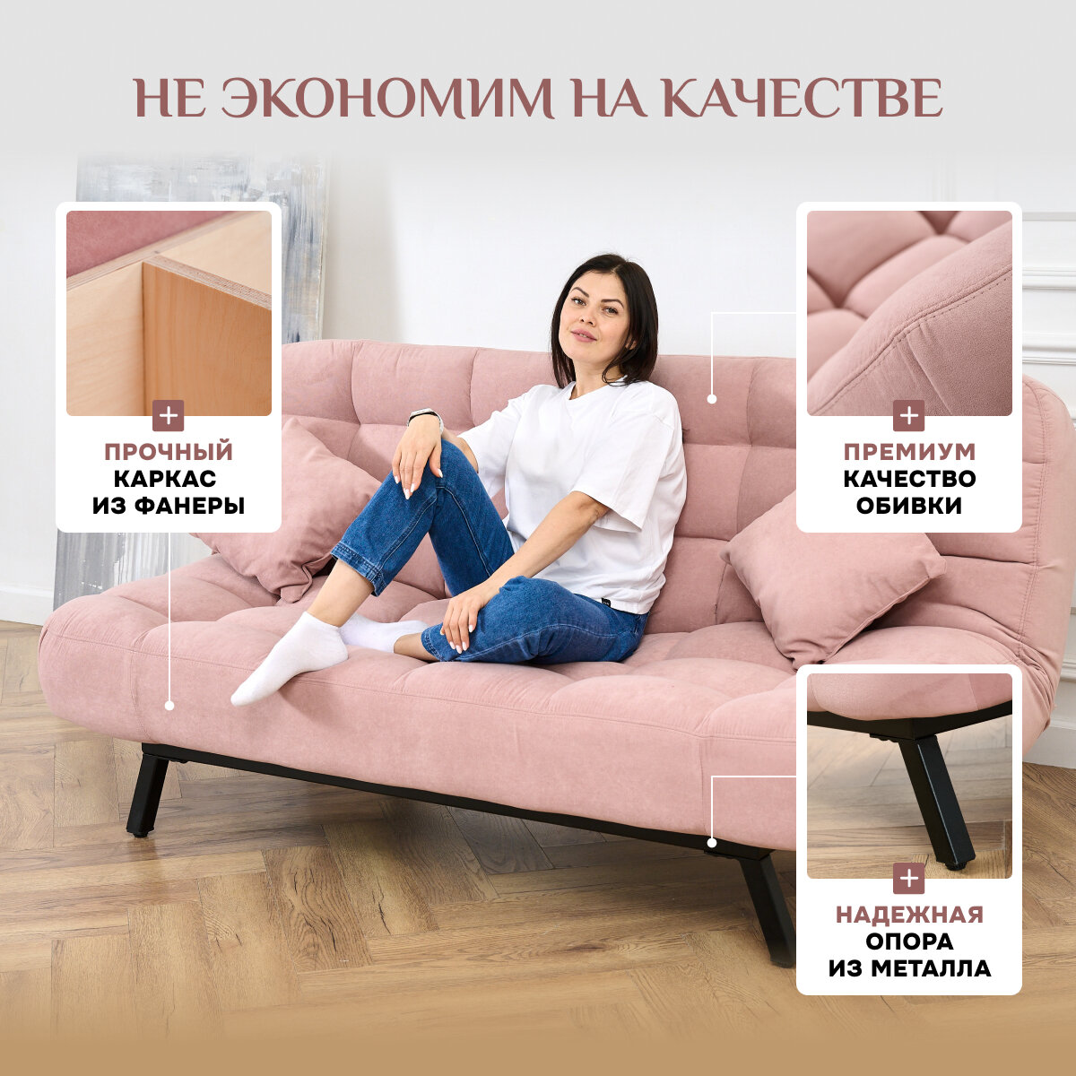 СохранитьДиван-кровать Brendoss 304, прямой диван раскладной с двойной спинкой лофт, механизм клик-кляк, материал антивандальный велюр, цвет розовый интересное: