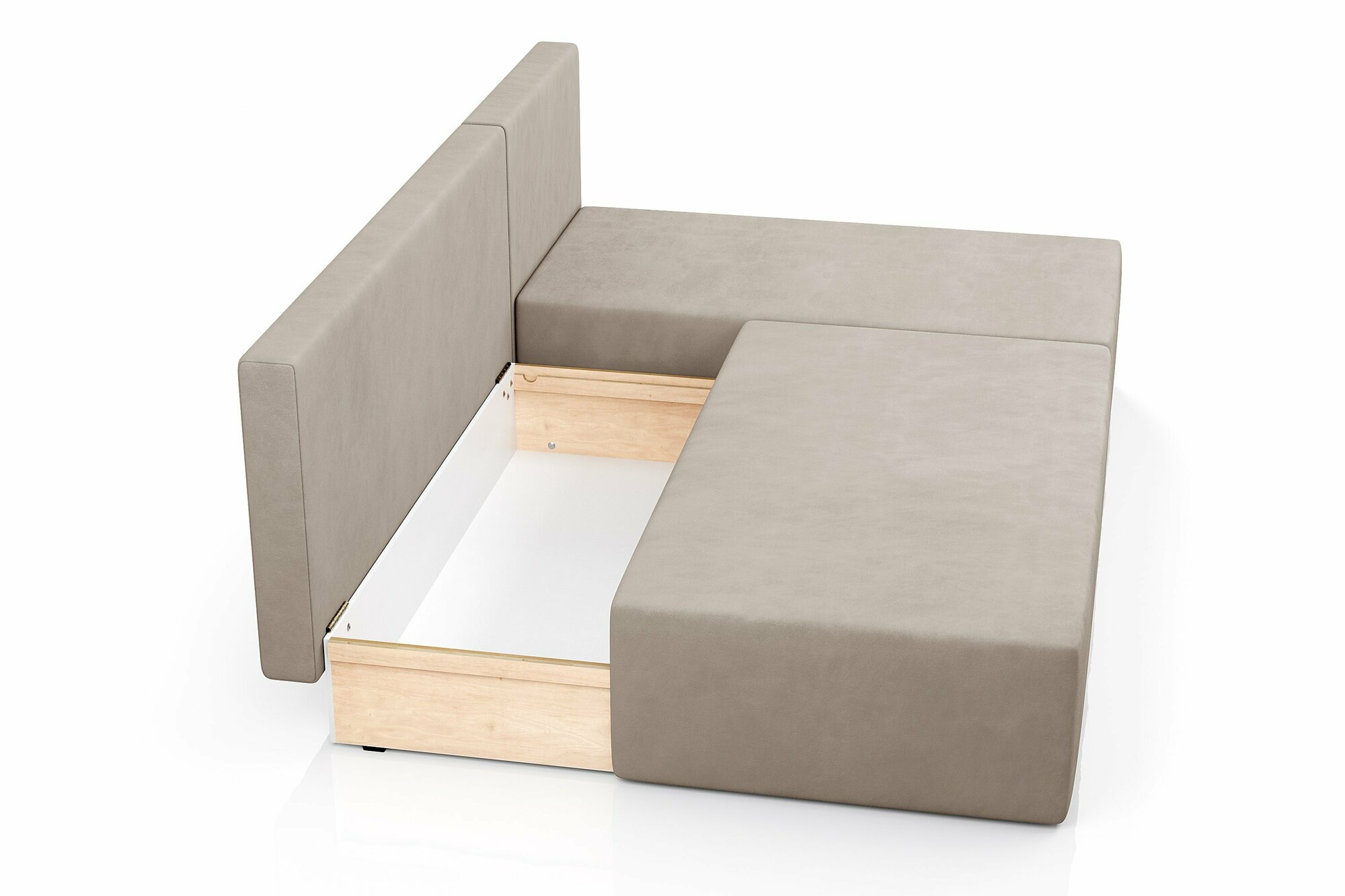 Диван-кровать Dee One раскладной угловой Корсо Лайт, еврокнижка, велюр, 187х87х76, с ящиком, бежевый