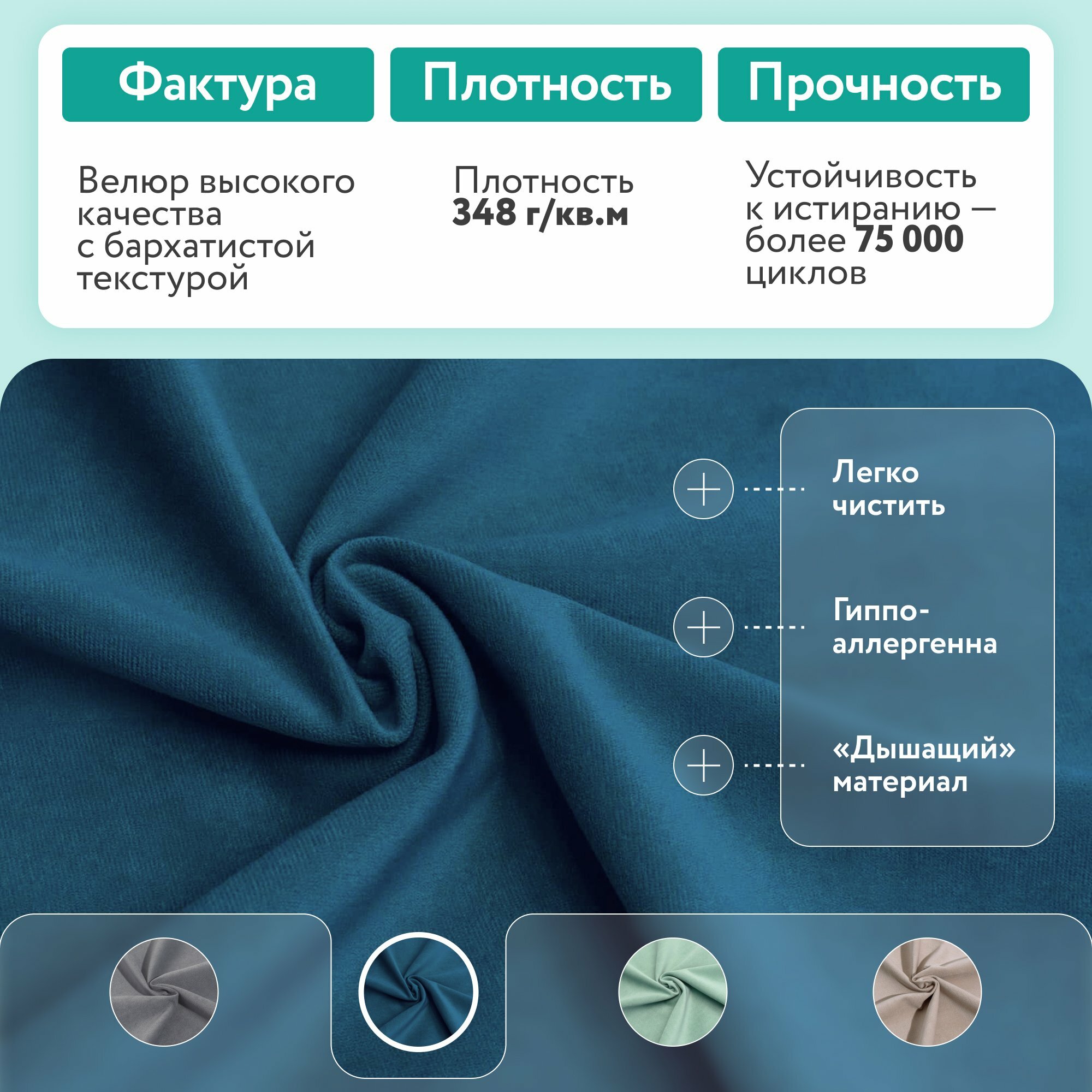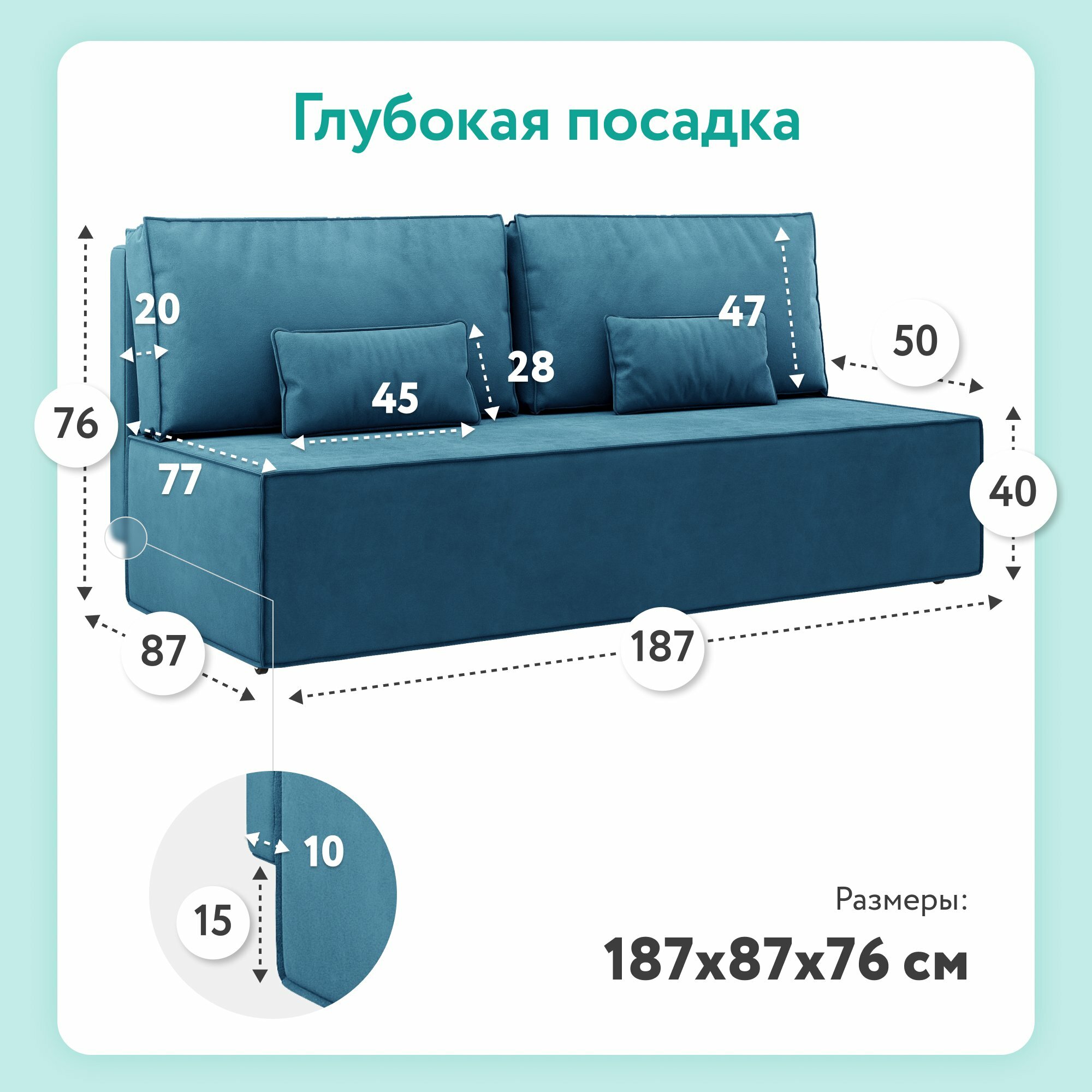 Диван-кровать раскладной прямой Корсо Лайт, еврокнижка, велюр, синий, 187х87х76
