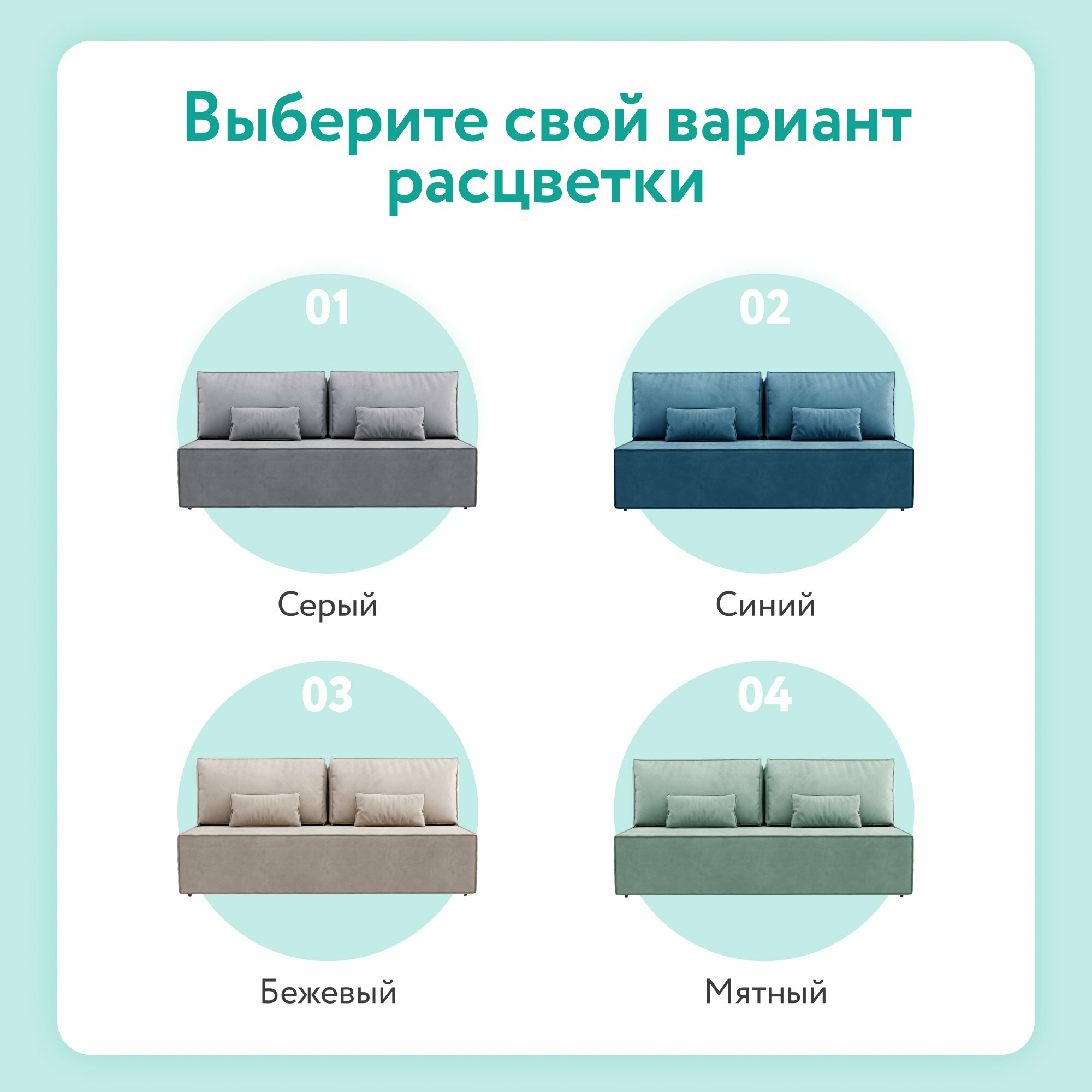 Диван-кровать раскладной прямой Веселая компания, еврокнижка, велюр, мятный, 184х87х76