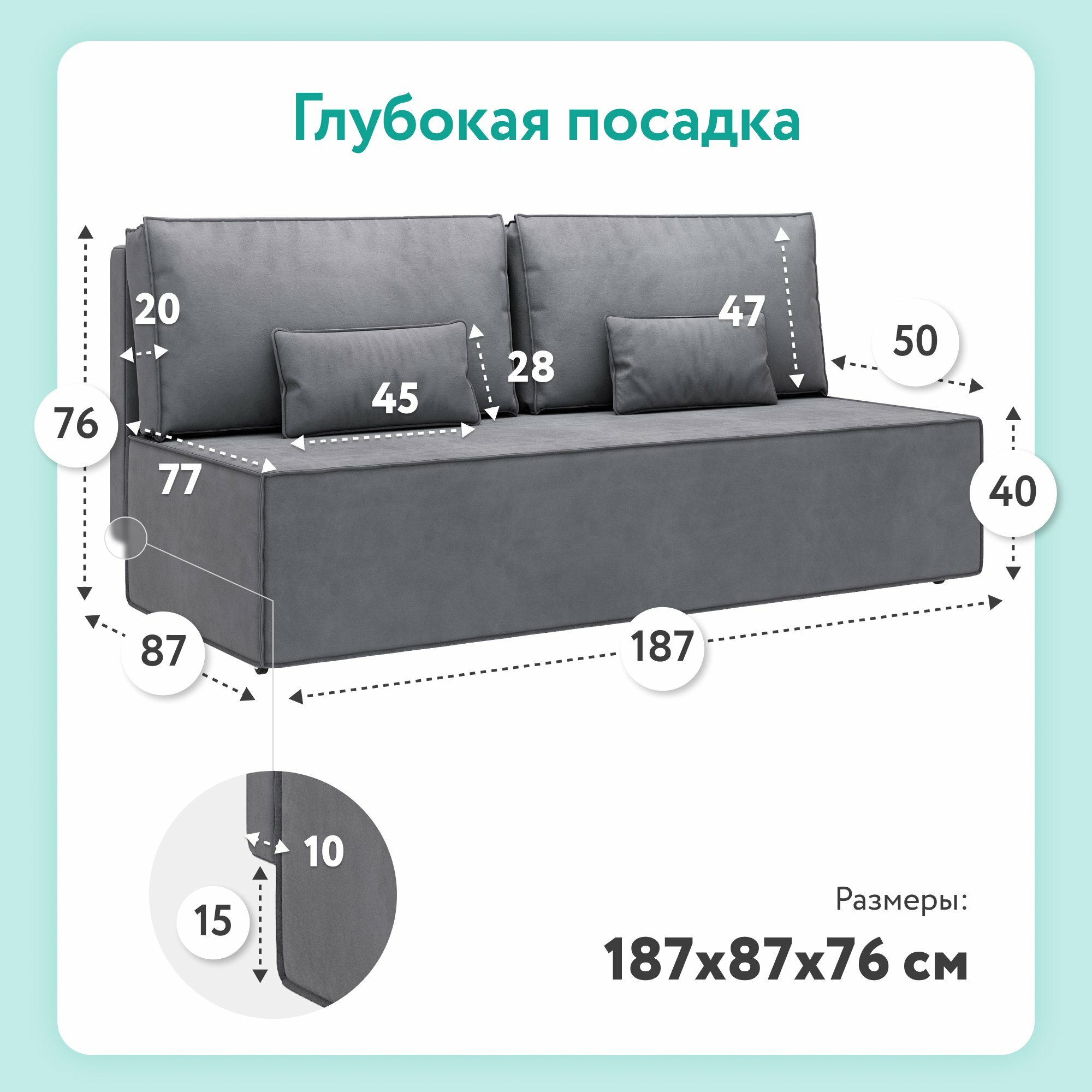 Диван-кровать раскладной прямой Корсо Лайт, еврокнижка, велюр, серый, 187х87х76