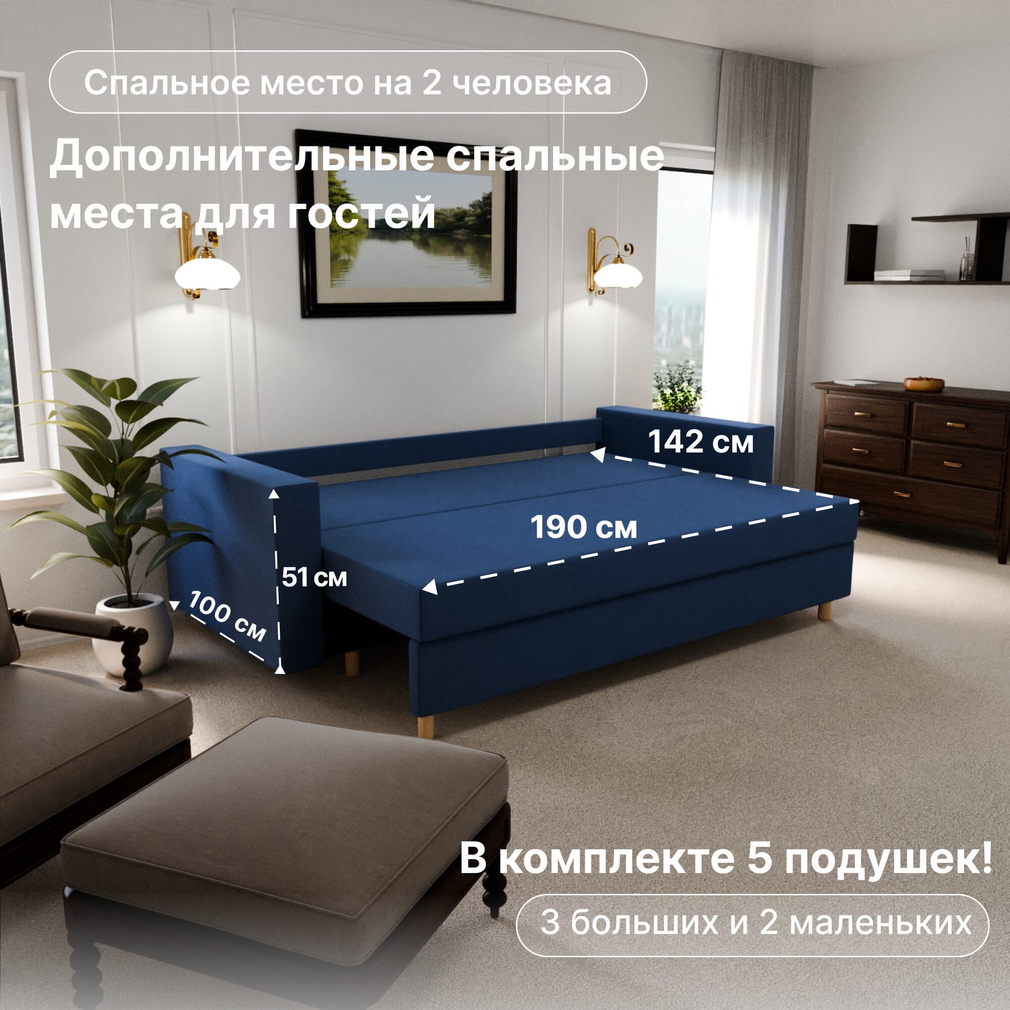 | Особенности | раскладная конструкция, с подлокотниками, съемные подушки, съемный чехол, ящик для белья |