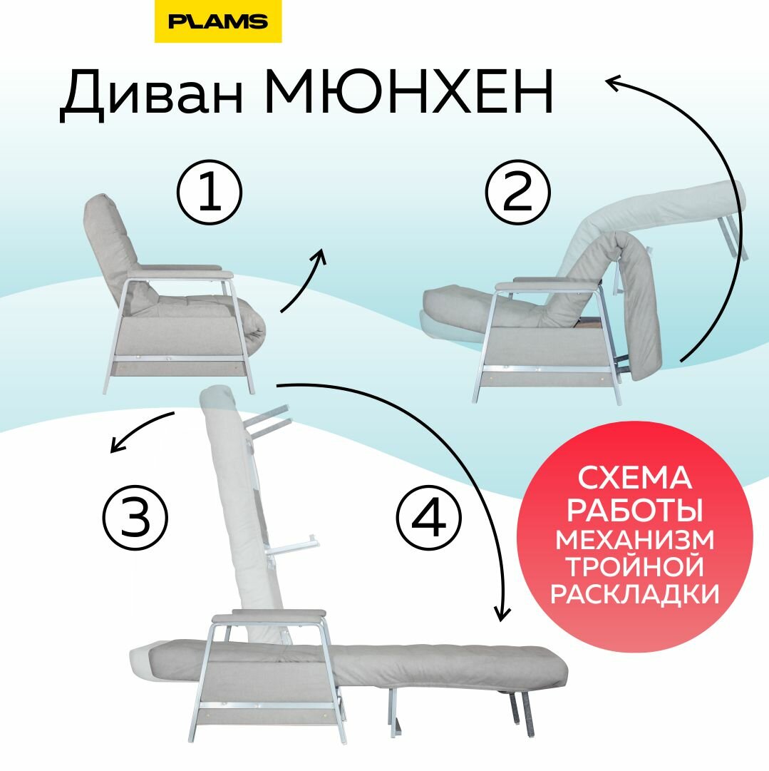 | Особенности | раскладная конструкция, с подлокотниками, съемный чехол |