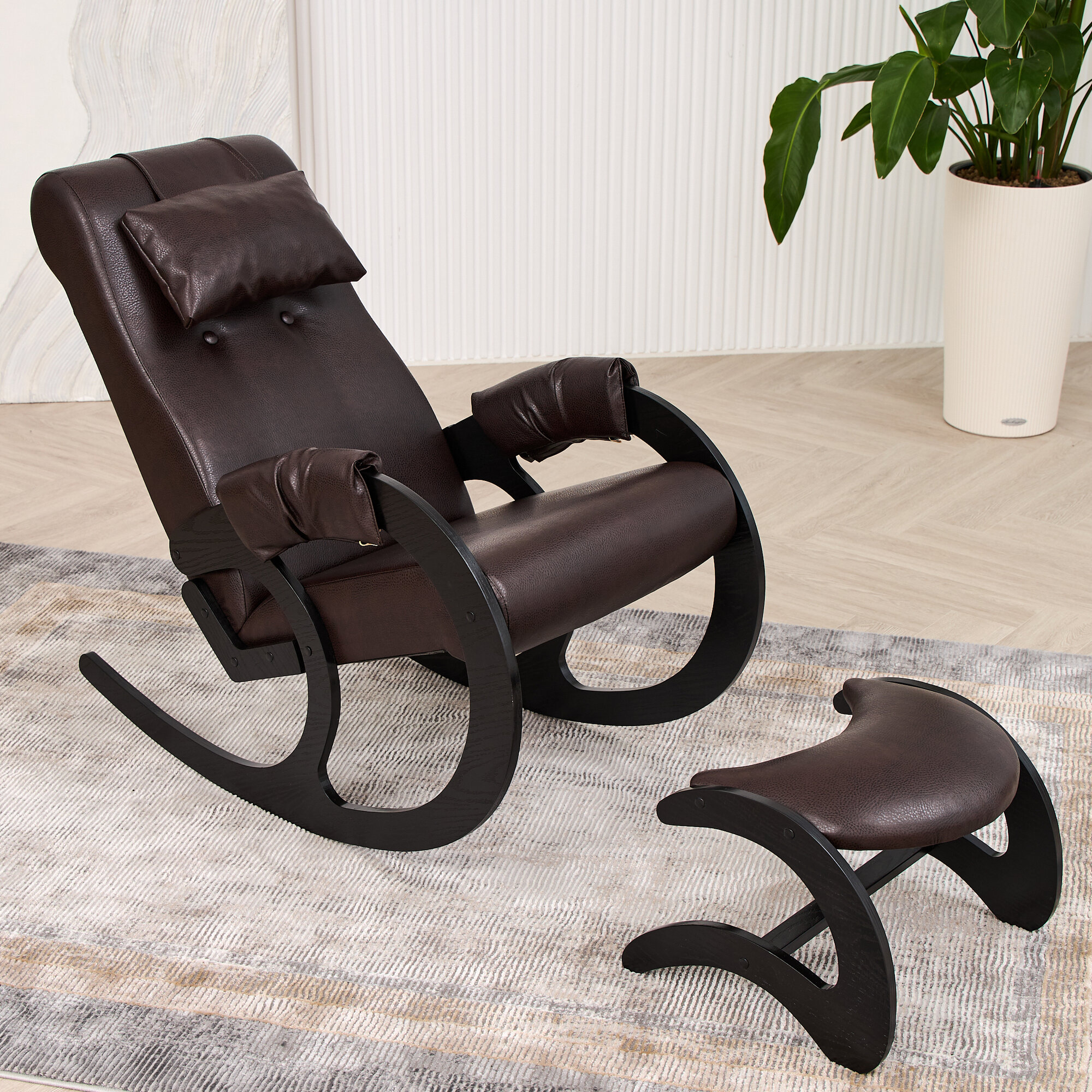 Кресло-качалка AVK Блюз, экокожа, с банкеткой, черные/венге