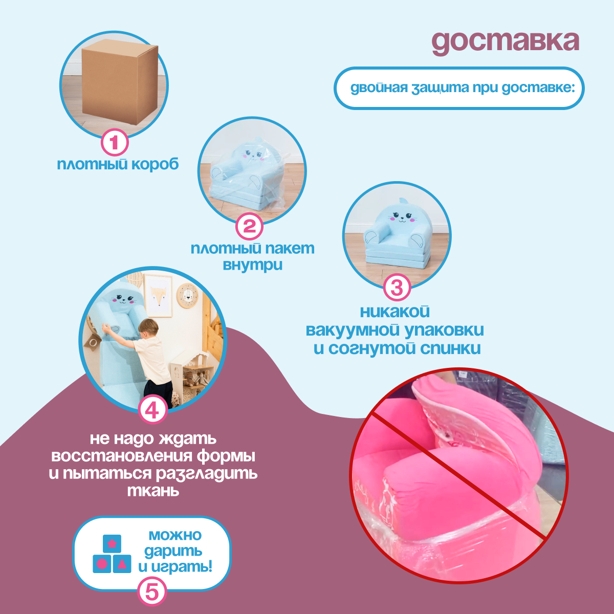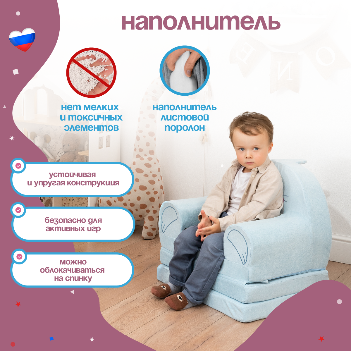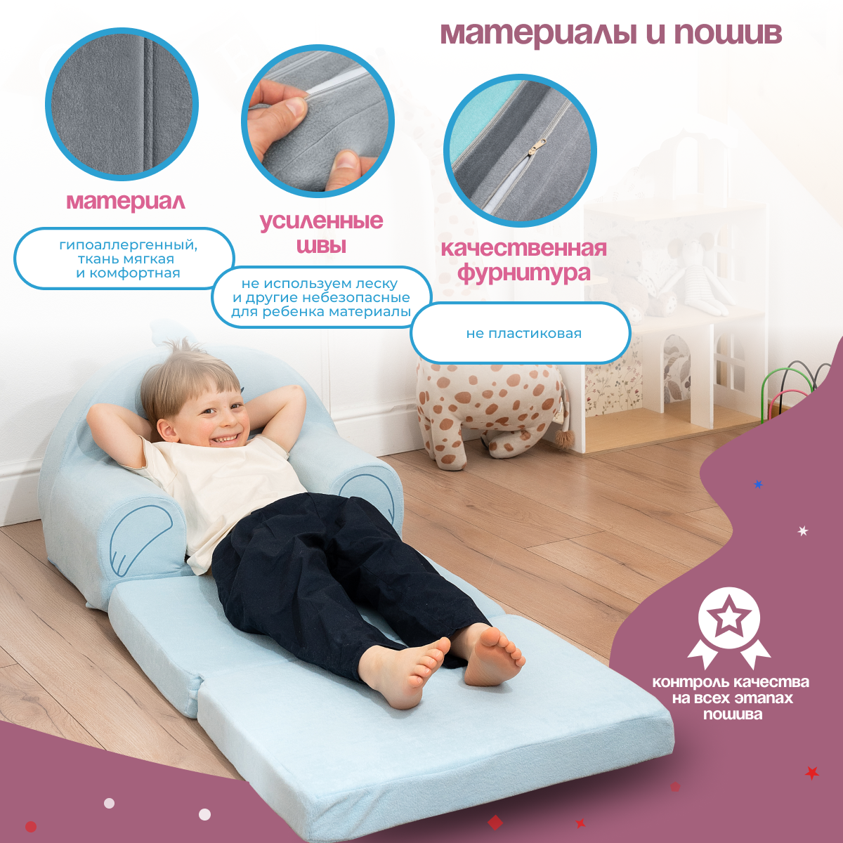 Кресло детское мягкое 2 сложения бескаркасное Капитоша (игровое, легкое) интересное: