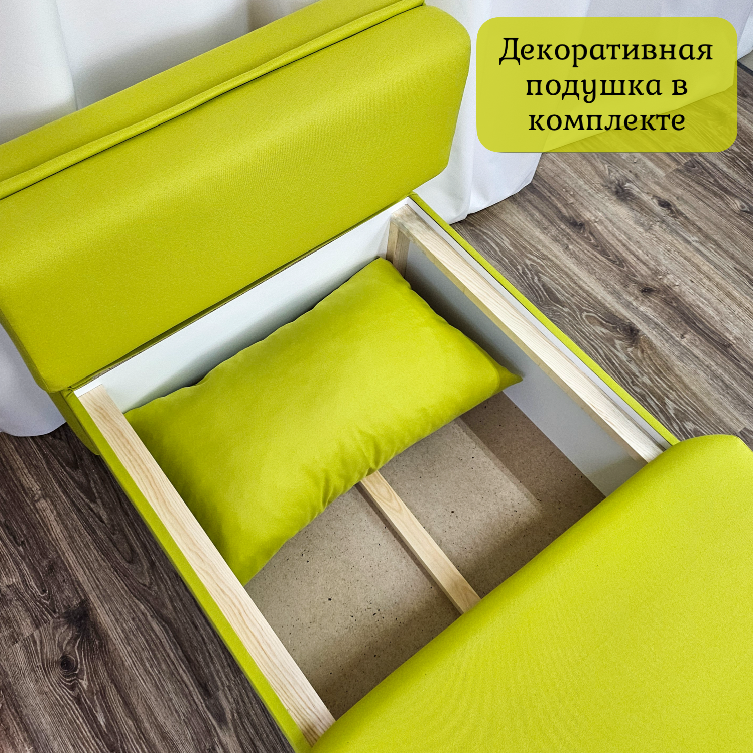 | Особенности | без колесиков, без подлокотников, с ножками, с подушкой, с ящиком для белья |