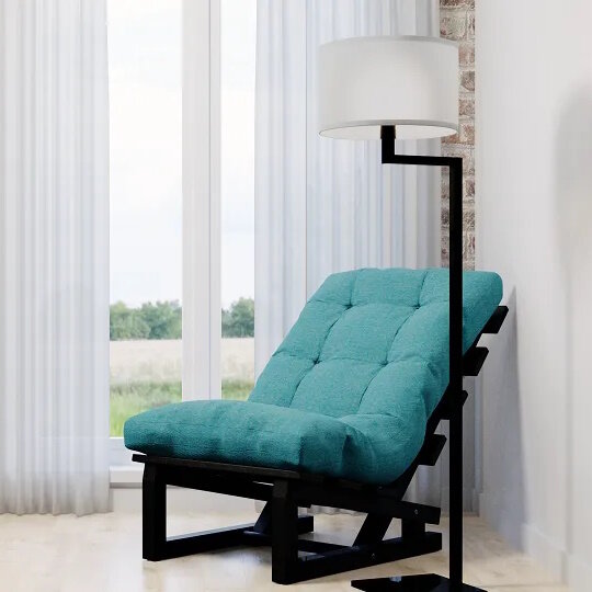 СохранитьКресло черное с бирюзовой подушкой Савушка для дома, для дачи, для террасы, для веранды, для улицы, шезлонг, деревянное интересное: