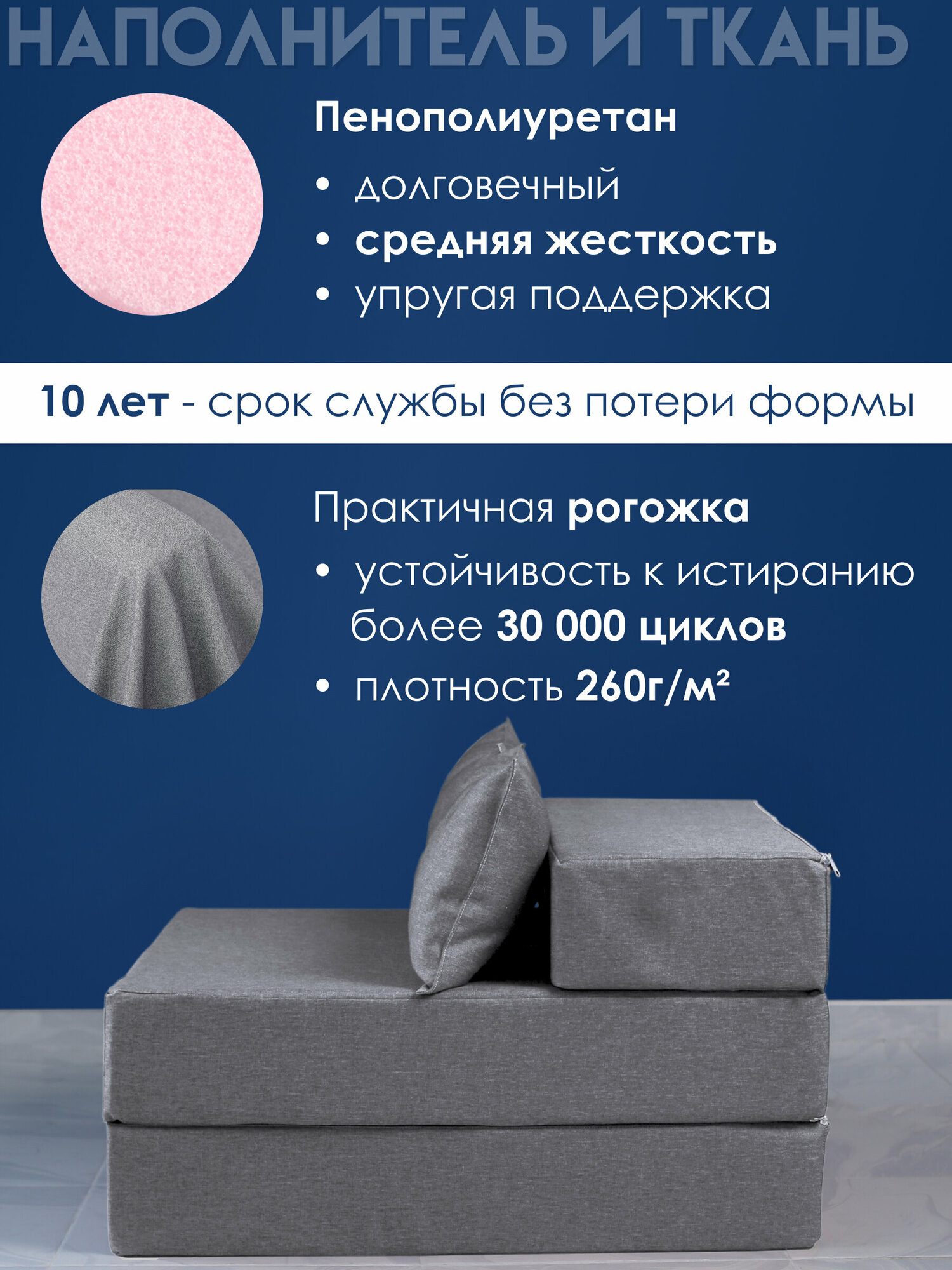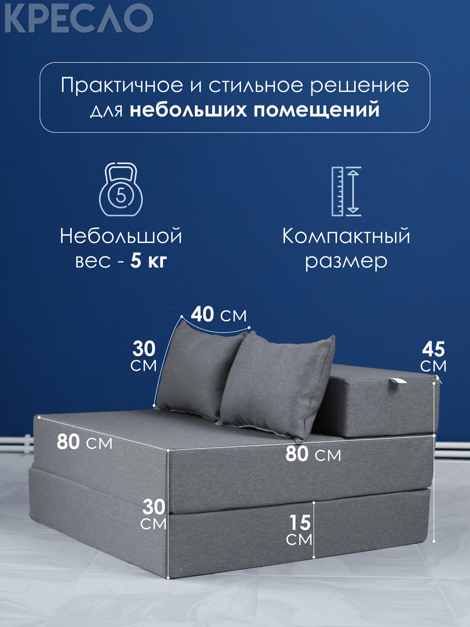 СохранитьБескаркасное кресло-кровать 80х190 см, высота матраса 15 см. Цвет: Серый меланж. Трансформер, раскладушка, складной матрас интересное: