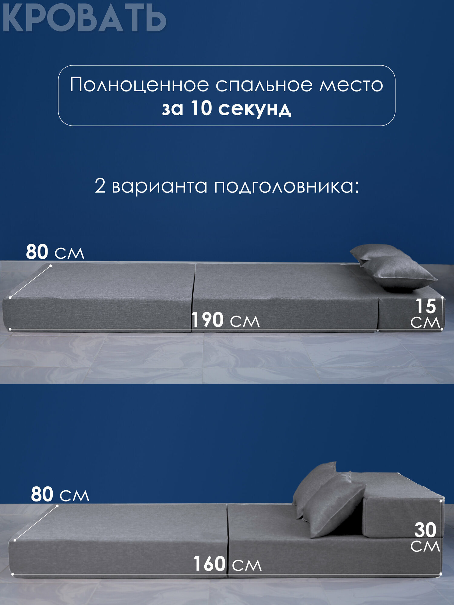 Купить Бескаркасное кресло-кровать 80х190 см, высота матраса 15 см. Цвет: Серый меланж. Трансформер, раскладушка, складной матрас