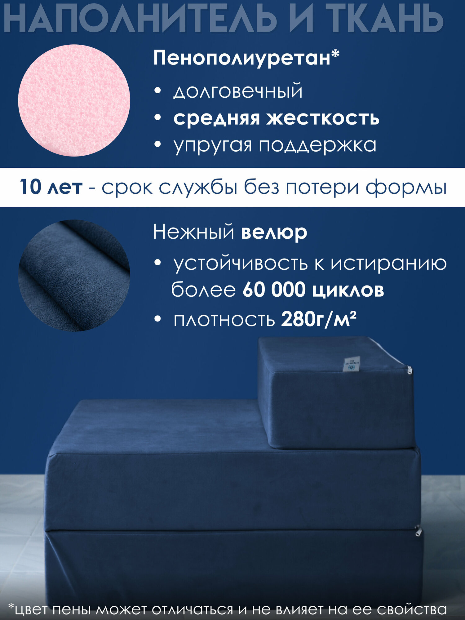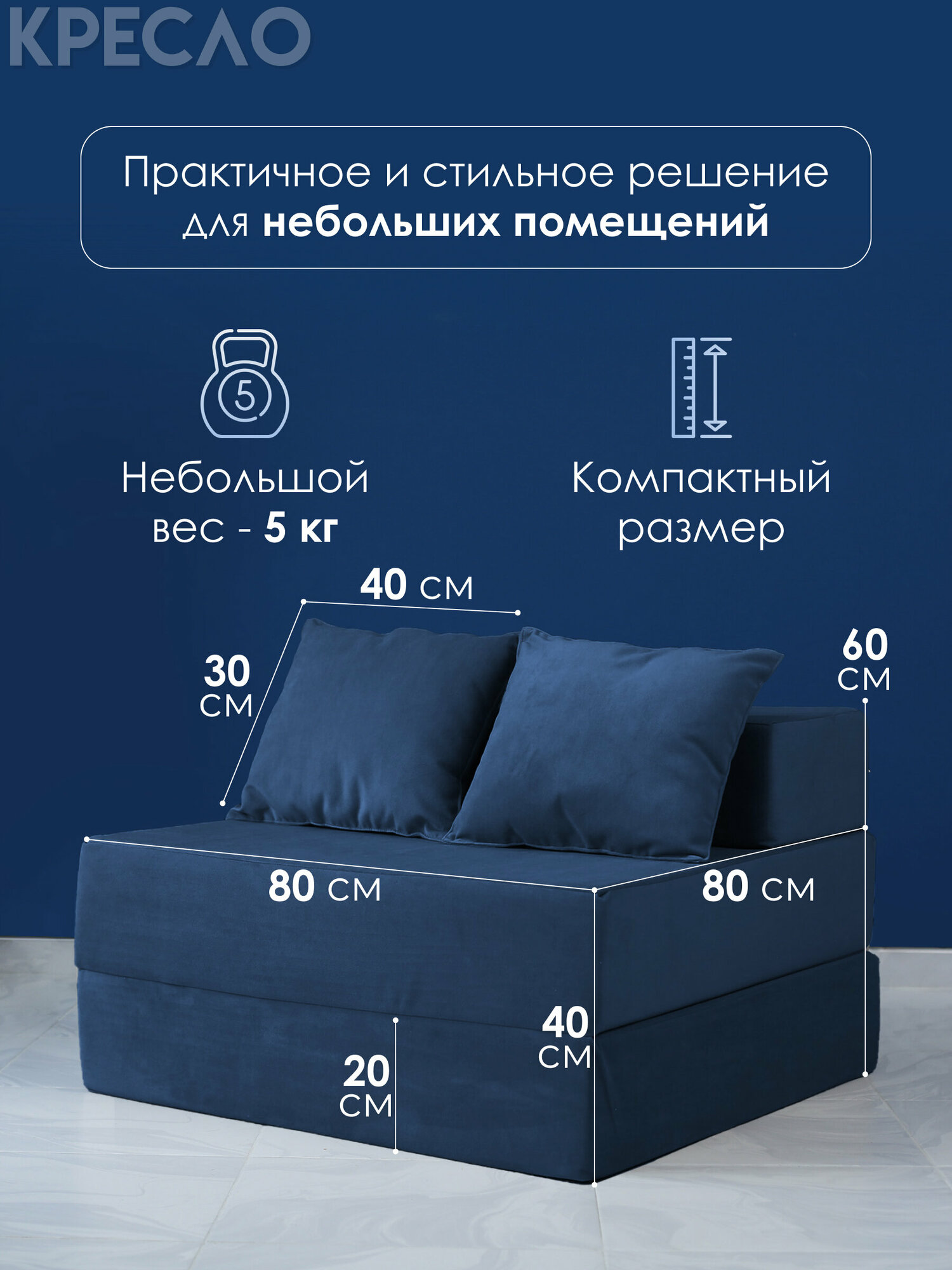 Бескаркасное кресло-кровать 80х190 см, высота матраса 15 см. Цвет: Темно-синий. Трансформер, раскладушка, складной матрас
