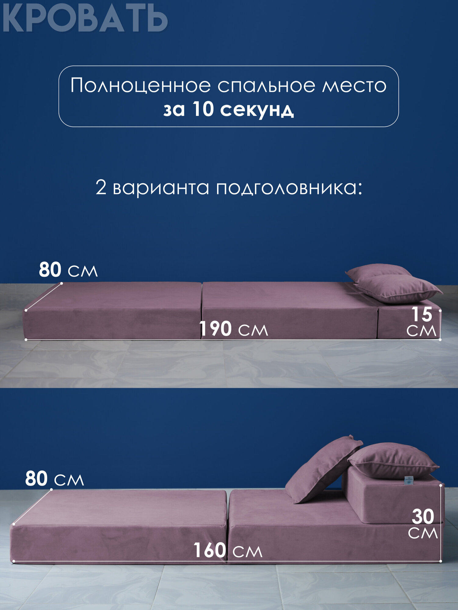 СохранитьБескаркасное кресло-кровать 80х190 см, высота матраса 15 см. Цвет: Лиловый. Трансформер, раскладушка, складной матрас интересное: