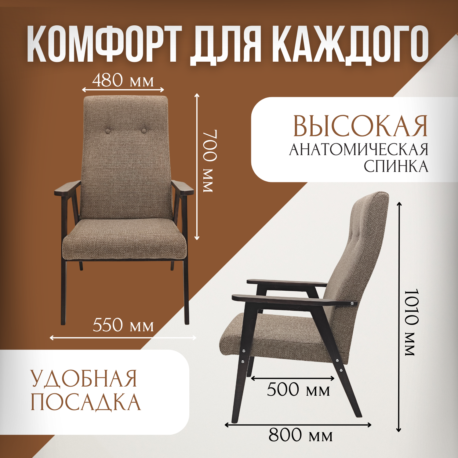 Кресло Ретро для дома, дачи, офиса,Какао (Ultra Cocoa) .Бренд Кресло Сибири