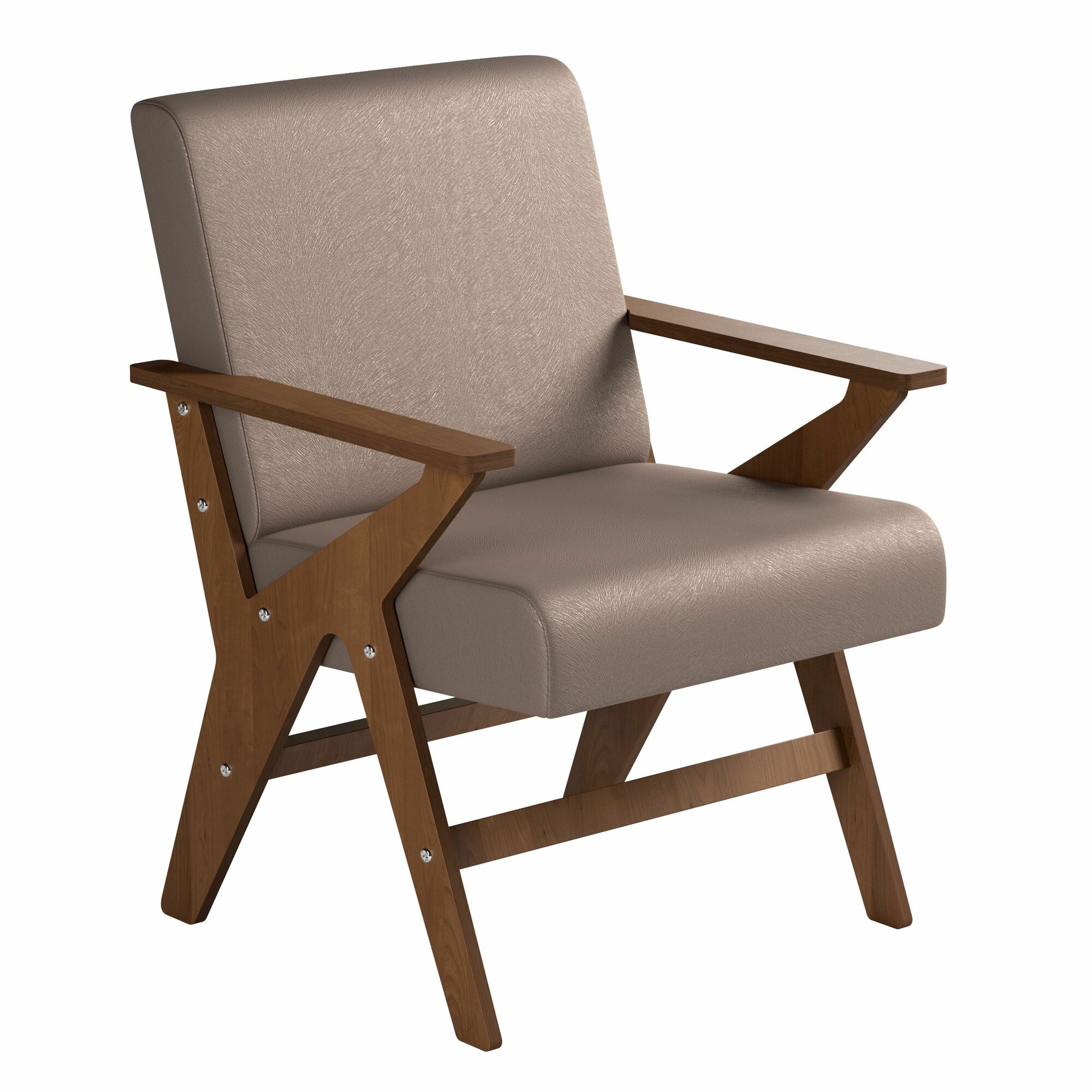 Купить Мягкое интерьерное кресло Далас на деревянных ножках для отдыха дома с подлокотниками, светло-коричневый флок, Ами Мебель Беларусь