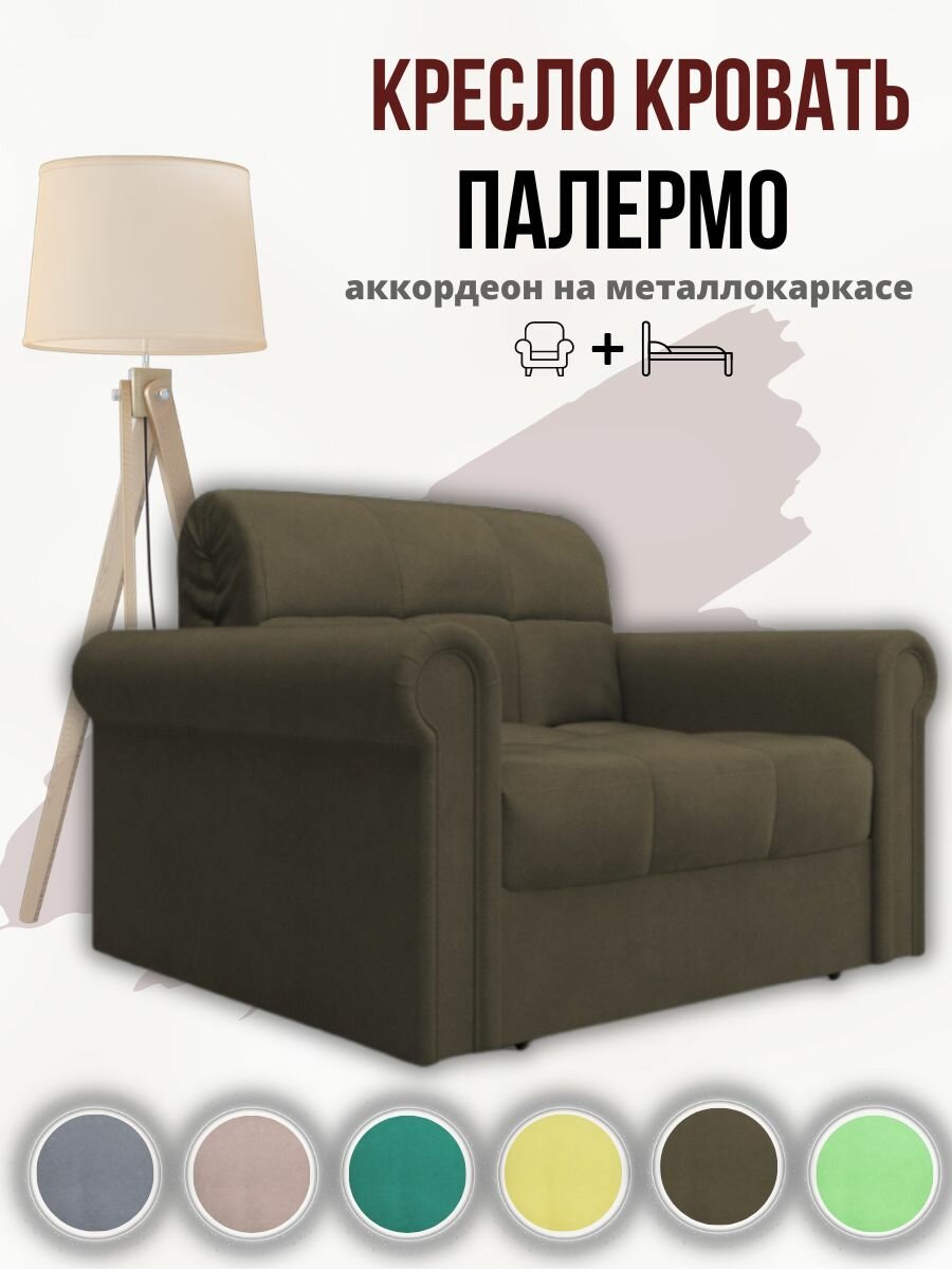 Кресло-кровать Палермо Коричневое Велюр, 134х106х85 см, на металлическом каркасе