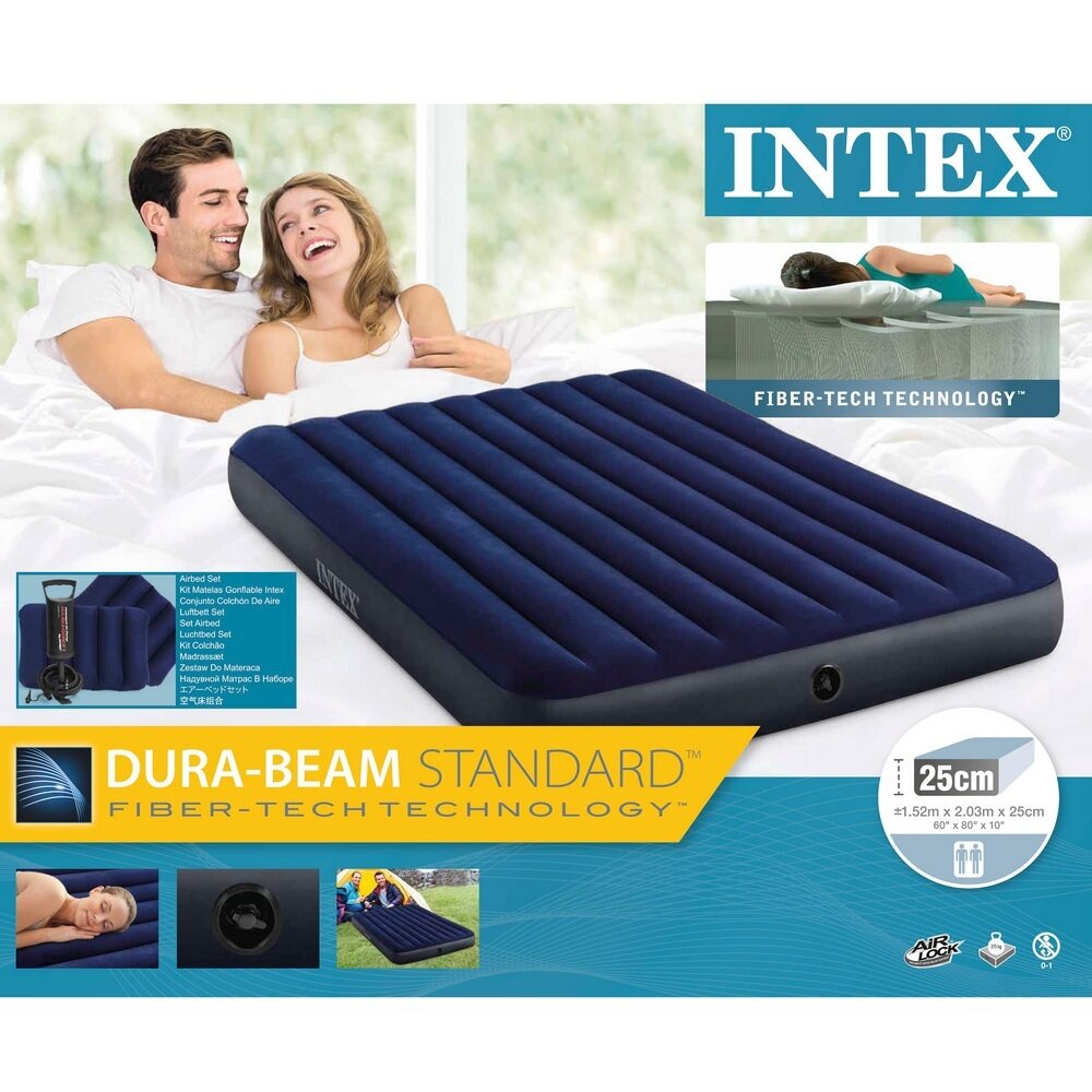 Надувной матрас 152х203х25см "Classic" с подушками и насосом, до 272кг
