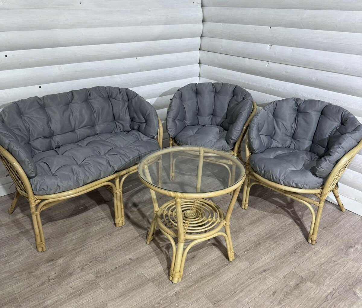 Купить Комплект "Багама" из натурального ротанга с серыми подушками