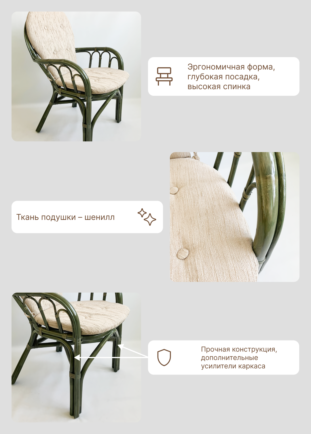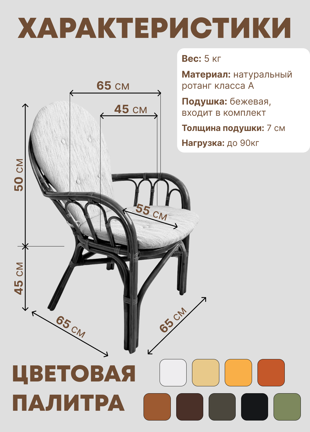 Стул из натурального ротанга с подушкой 04/16, цвет миндаль матовый интересное: