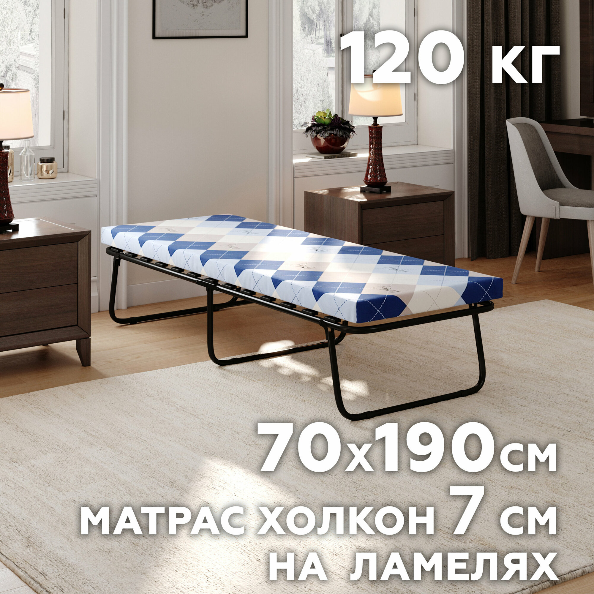 Раскладушка 70х190см на ламелях с матрасом 7 см Холкон, КТ37 интересное: