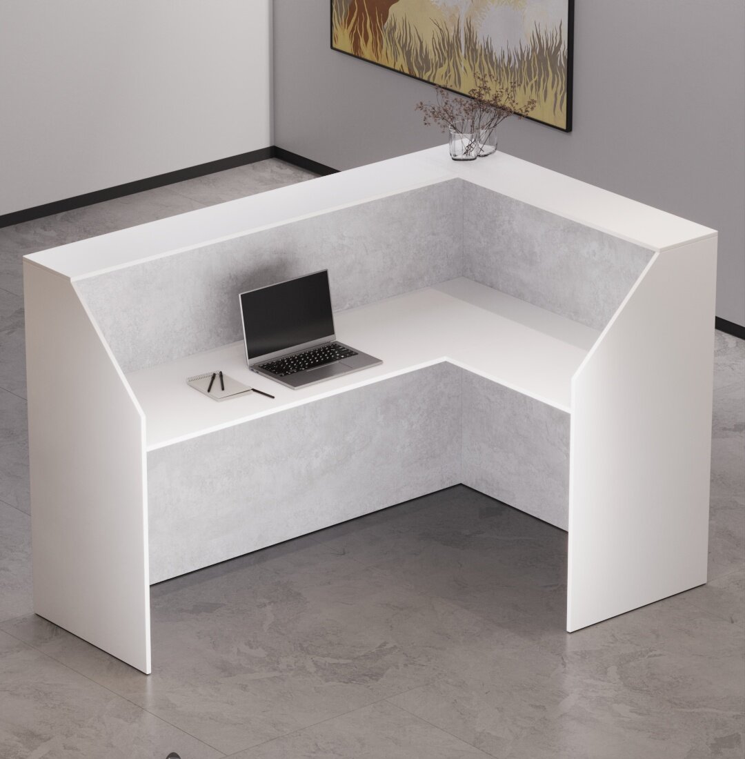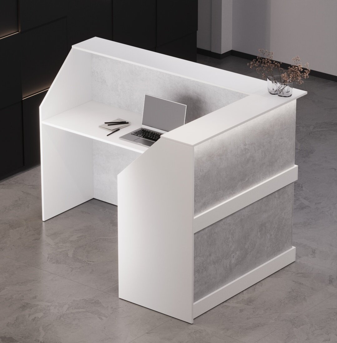 Купить Стойка Ресепшн Эконом Угловая / Белый + цемент светлый / 1500х1200х600 С Подсветкой
