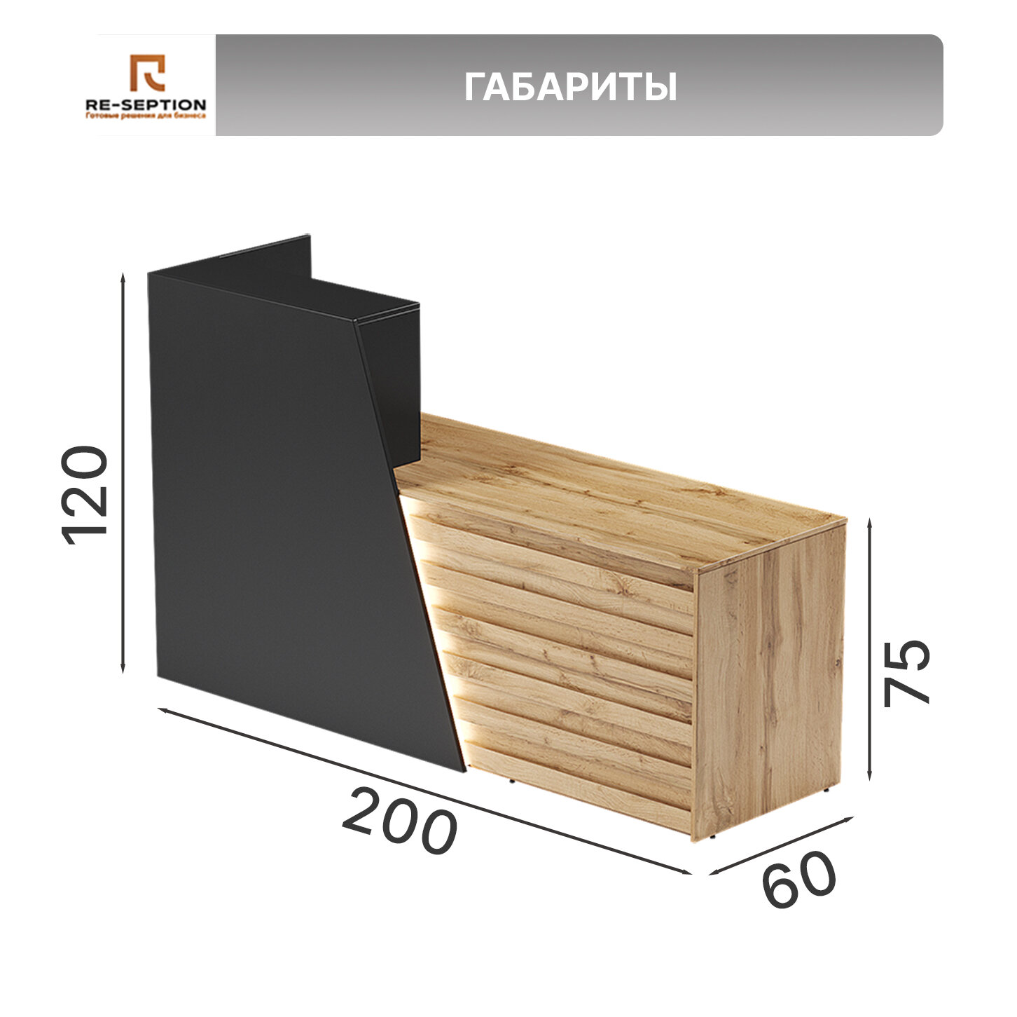 СохранитьСтойка ресепшен Спейс / Черный + Дуб Вотан / 2000х1200х600 Подсветка интересное: