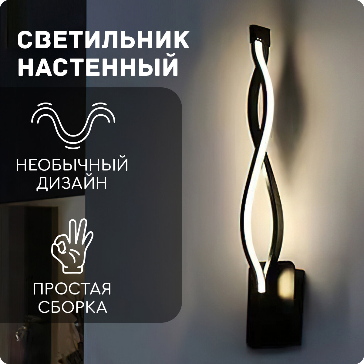 Светильник бра настенный (восьмёрка, черный) Hans&Helma светодиодный LED на стену лампа ночник в спальню прихожую офис декоративный интересное: