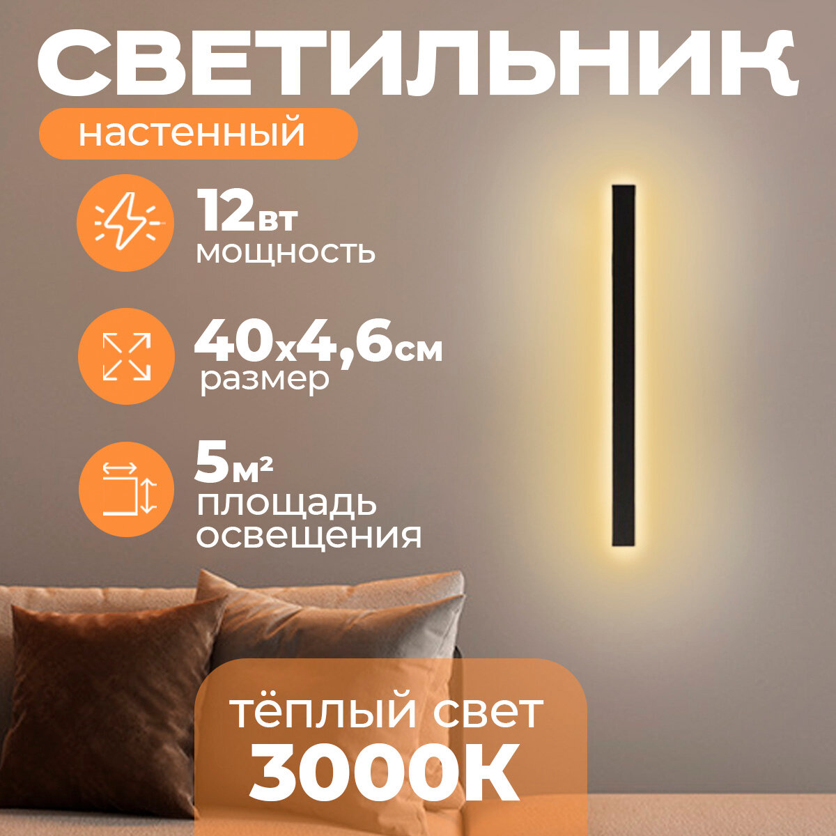 Светильник бра настенный светодиодный Unica 400x46 мм Black 12W матовый черный (теплый белый 3000K) интересное: