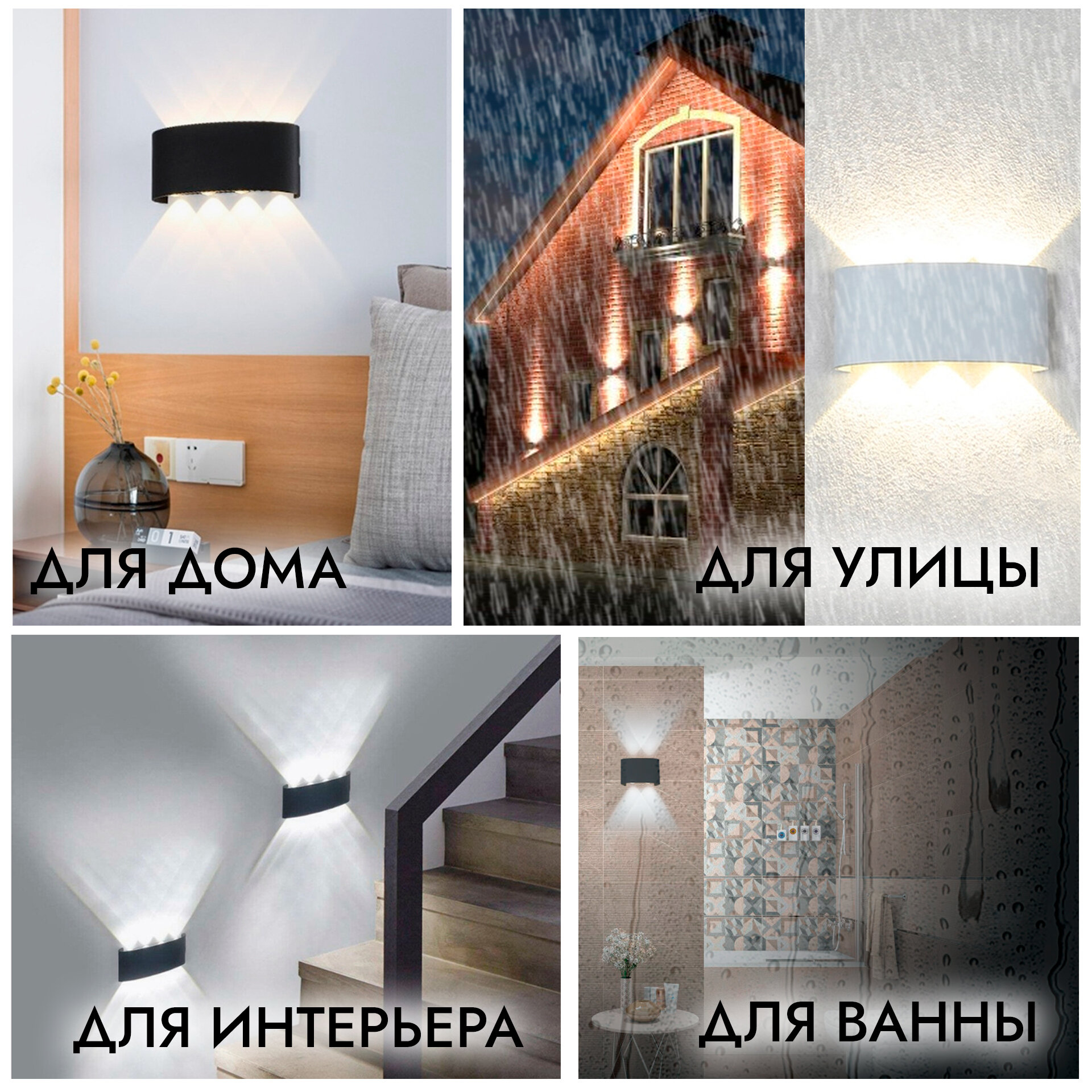 MorningLight Светильник светодиодный Настенный бра для дома квартиры Ночник Уличный светильник LED 6 ламп белый 3000К