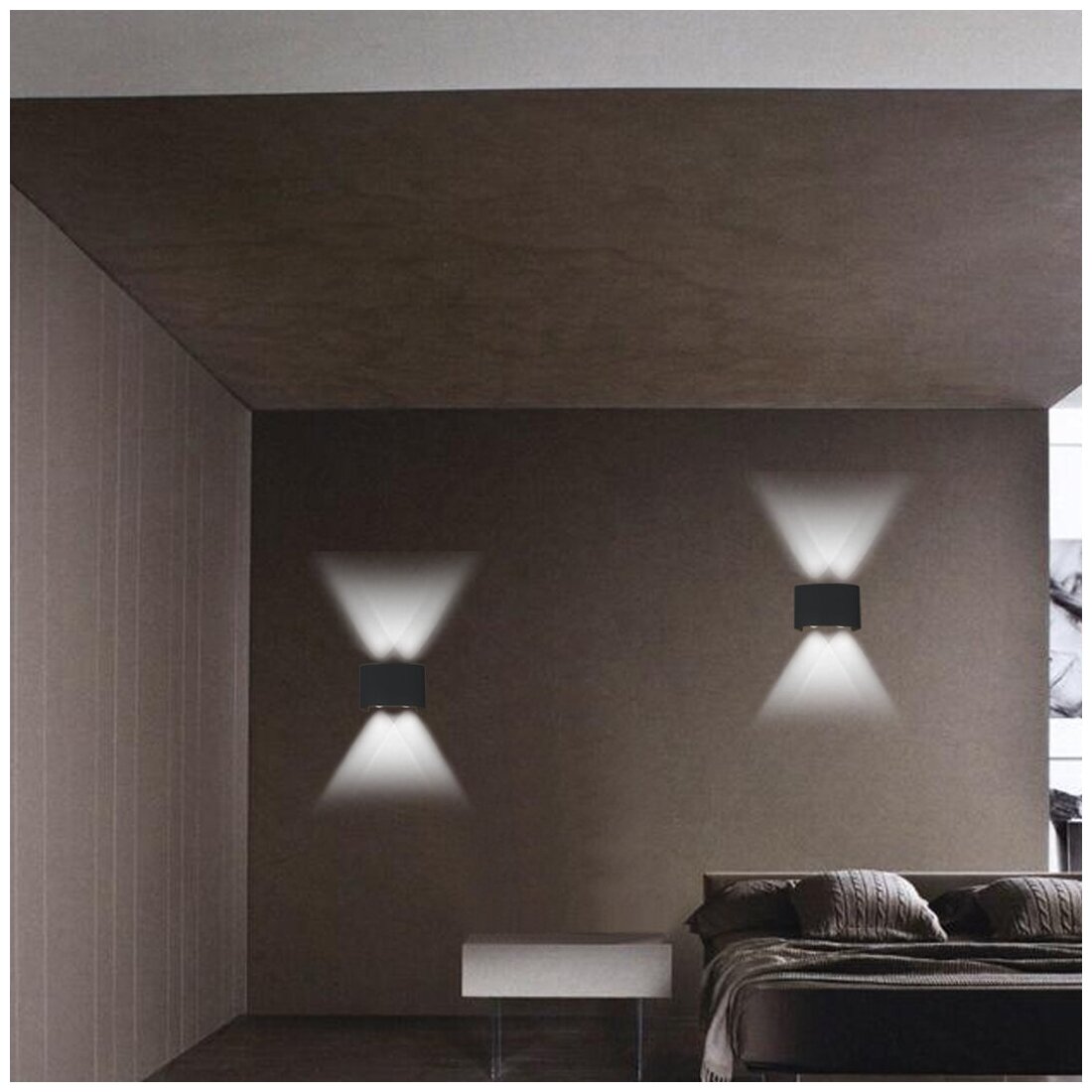 MorningLight Светильник светодиодный LED Настенный светильник бра для дома квартиры Уличный светильник Ночник 2 лампы черный Холодный свет 6000К