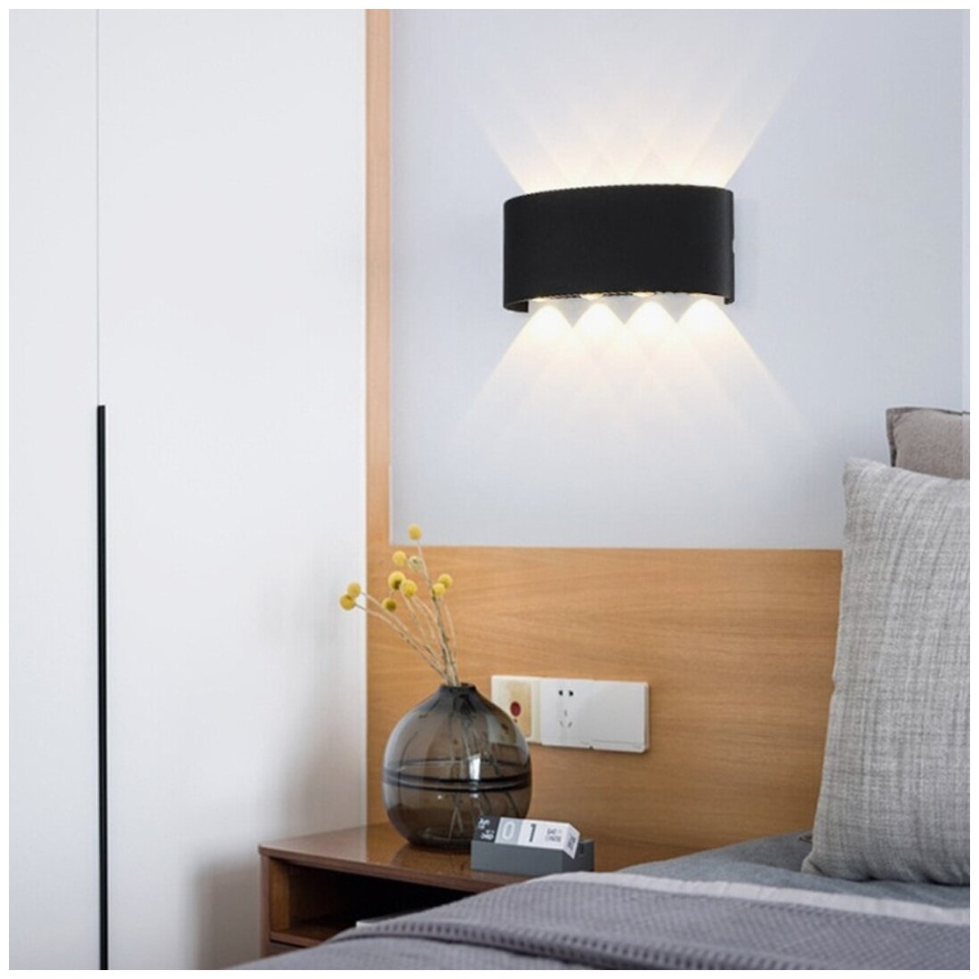 MorningLight Светильник светодиодный LED Накладной светильник бра для дома квартиры Уличный светильник Ночник 8 ламп черный Теплый свет 3000К