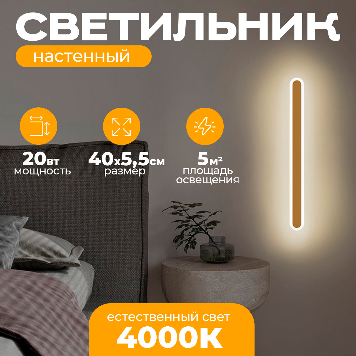 Светильник настенный светодиодный Loft Gold 600x55 мм (теплый белый 3500К) 20W