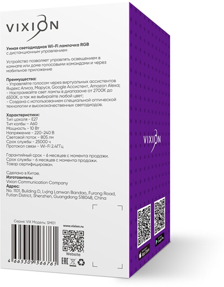 Ниже Вы можете прочитать отзывы на Умная цветная лампочка для Яндекс Алисы LED светодиодная Wi-Fi RGB SM01 RGB, 6500К, E27, 10 Вт Vixion Умный дом, ознакомится с подробными характеристиками, посмотреть интересные обзоры и фотографии на Умная цветная лампочка для Яндекс Алисы LED светодиодная Wi-Fi RGB SM01 RGB, 6500К, E27, 10 Вт Vixion Умный дом.