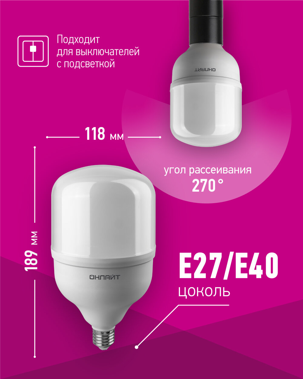 | Дополнительная информация | Переходник E27 -> Е40 в комплекте |
