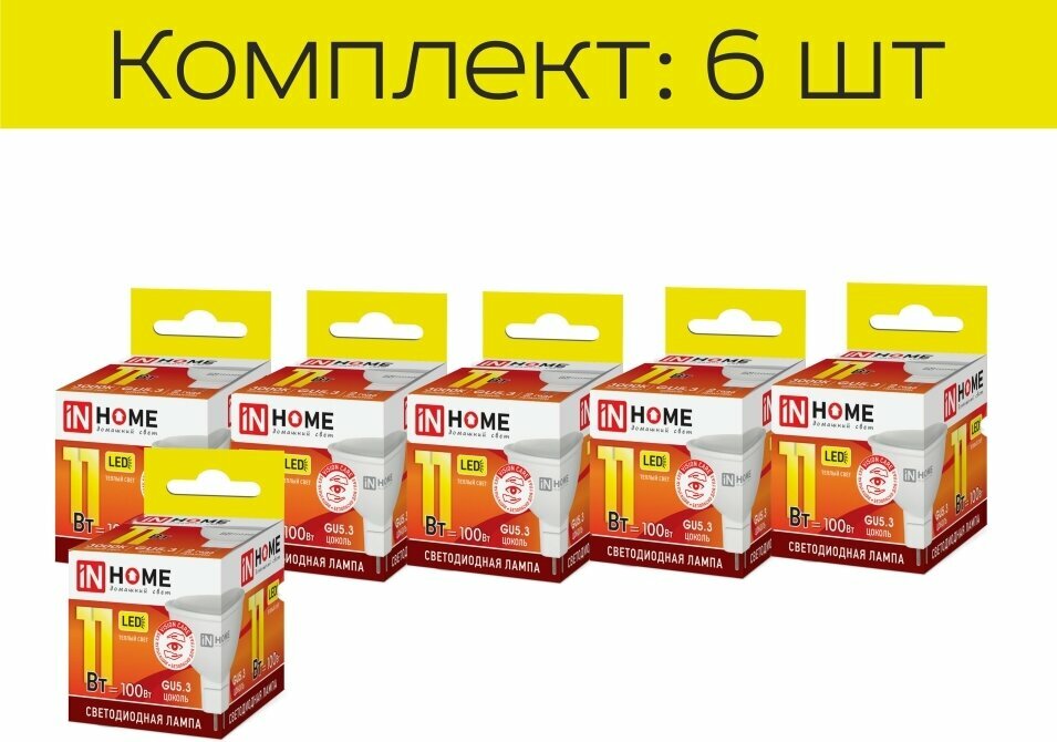 Лампа светодиодная GU5.3, набор 10 шт, теплый свет 3000К, 990 Лм / 11 Вт, 230 В, IN HOME LED-JCDR-VC