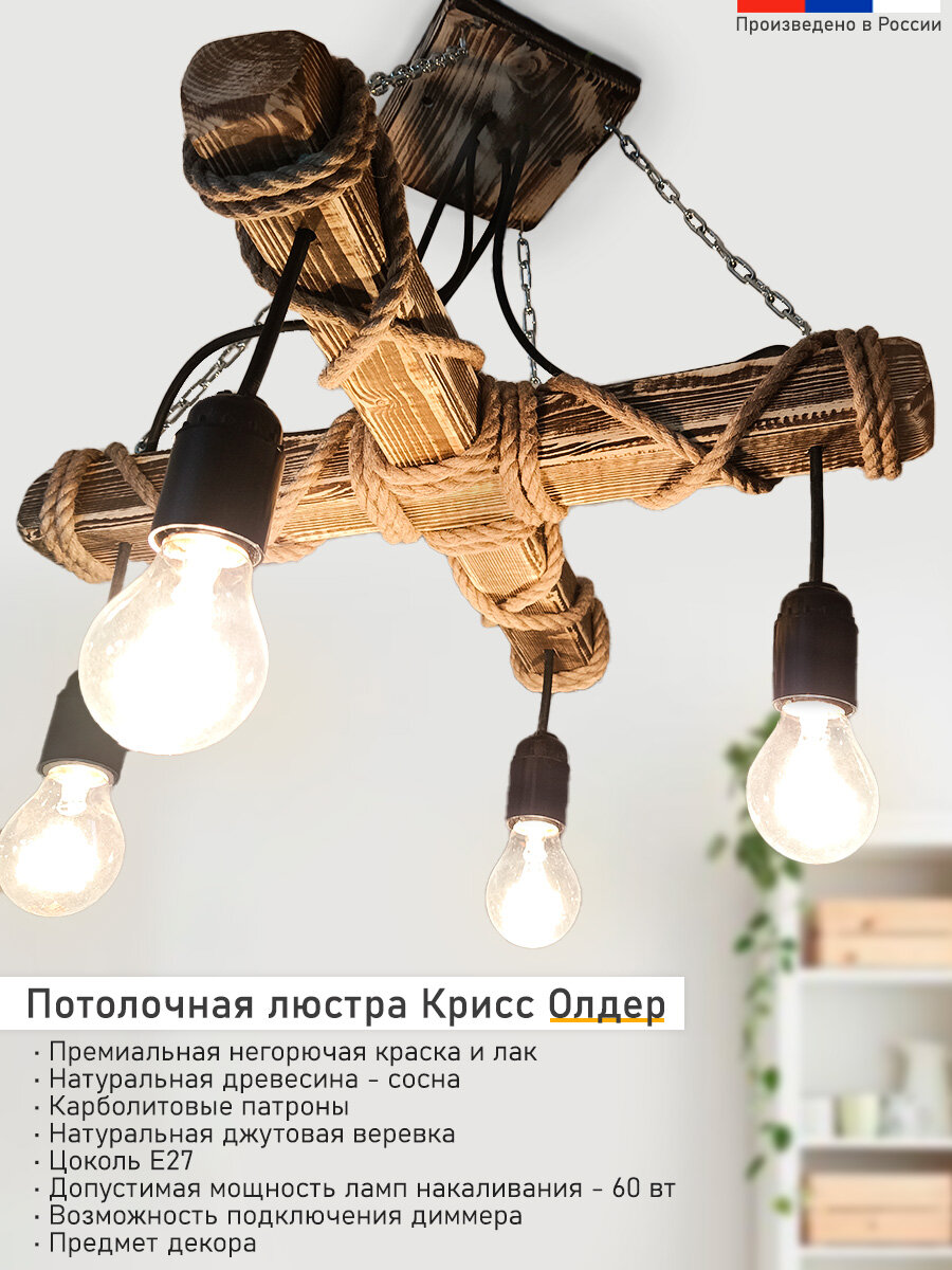 Люстра подвесная из дерева "Крисс Олдер" интересное: