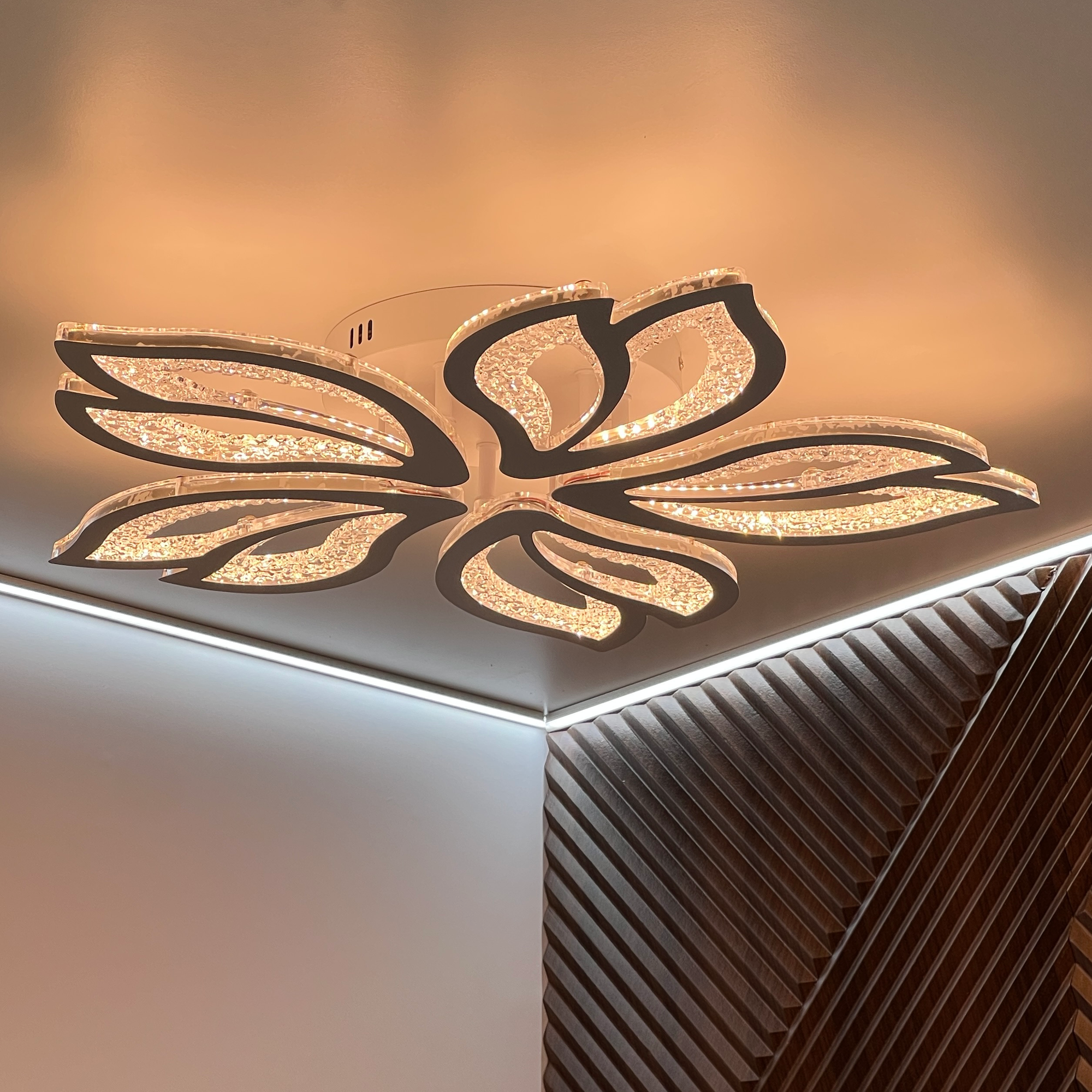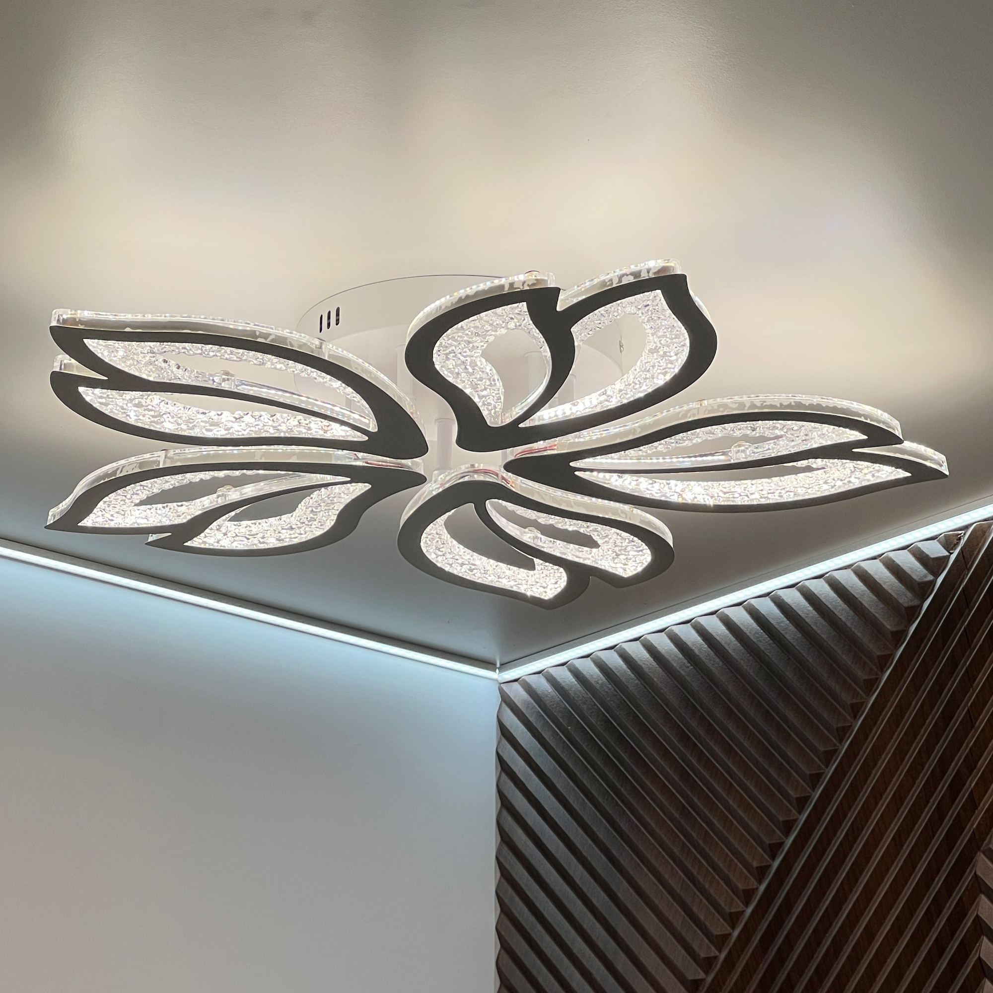 Люстра с пультом светодиодная потолочная, 110W, 5ламп, цветок, белая, LEDCITY интересное: