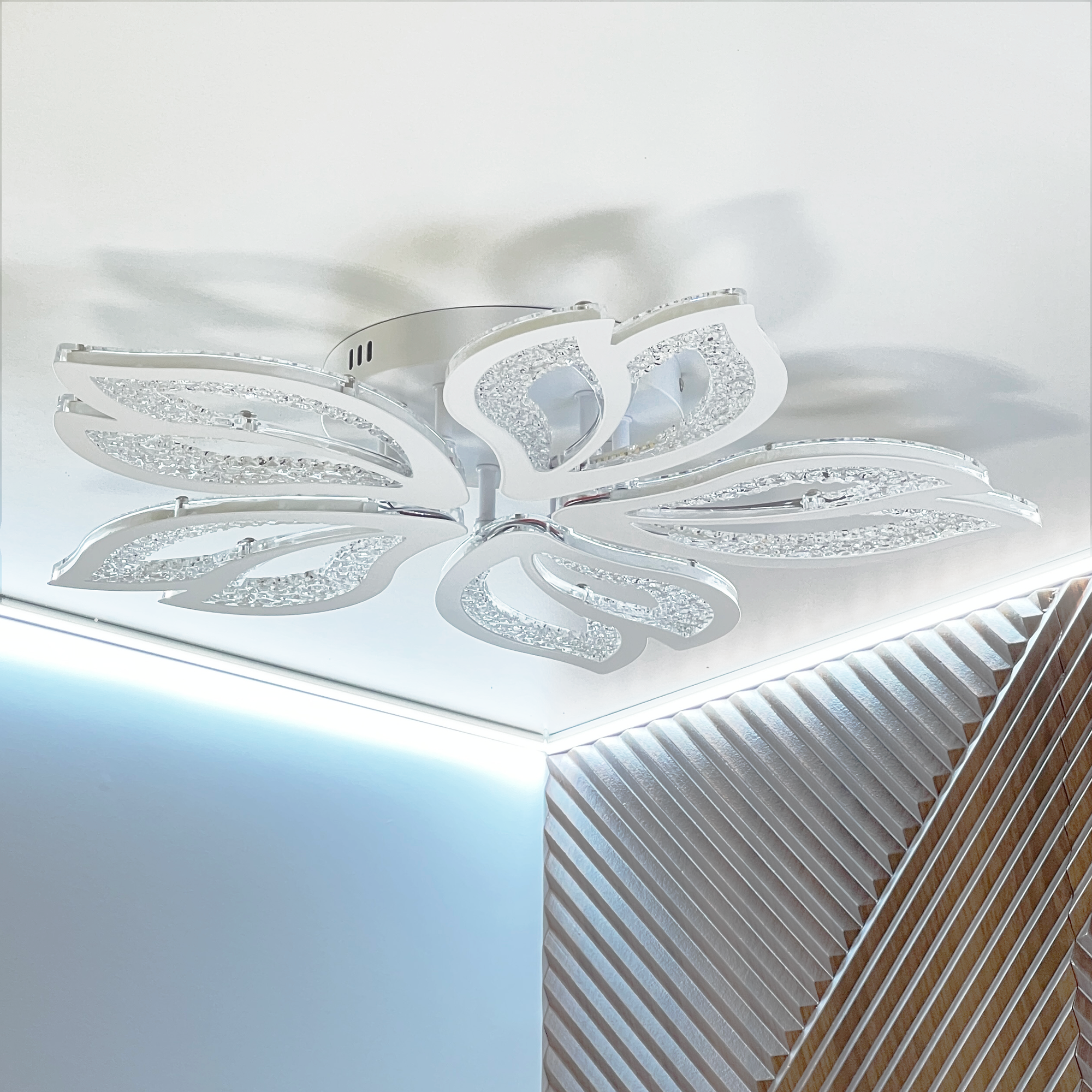 Купить Люстра с пультом светодиодная потолочная, 110W, 5ламп, цветок, белая, LEDCITY