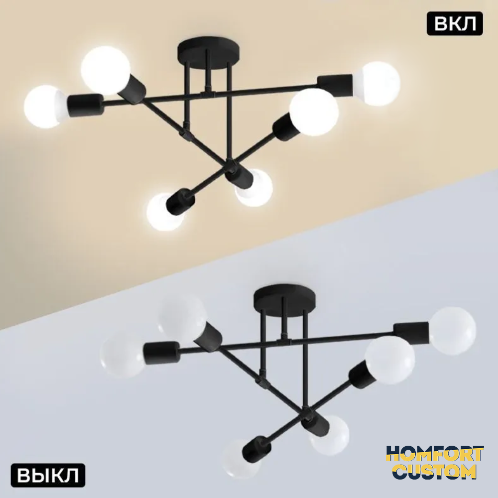 Люстра потолочная на кухню, в спальню, гостиную, коридор, детскую, ванную, зал. Светильник 6 ламп. Лампа подвесная интересное: